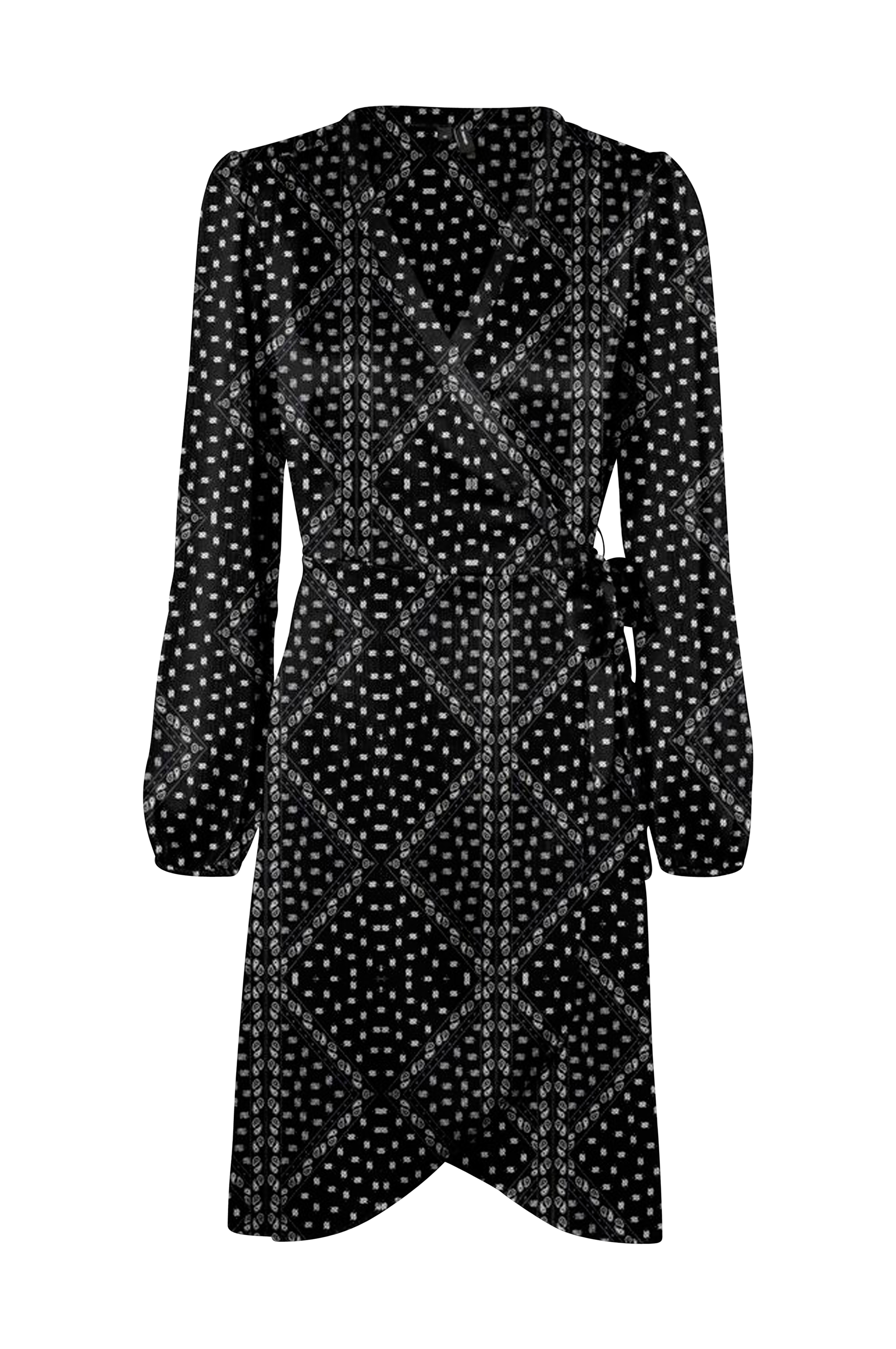 Slå om-kjole vmGamma L/S Wrap Dress fra Vero Moda med bindebånd i siden, asymmetrisk kant forneden og langt, vidt ærme med elastisk ærmekant. I vævet kvalitet med glans. Længde bagpå ca. 100 cm i str. S.