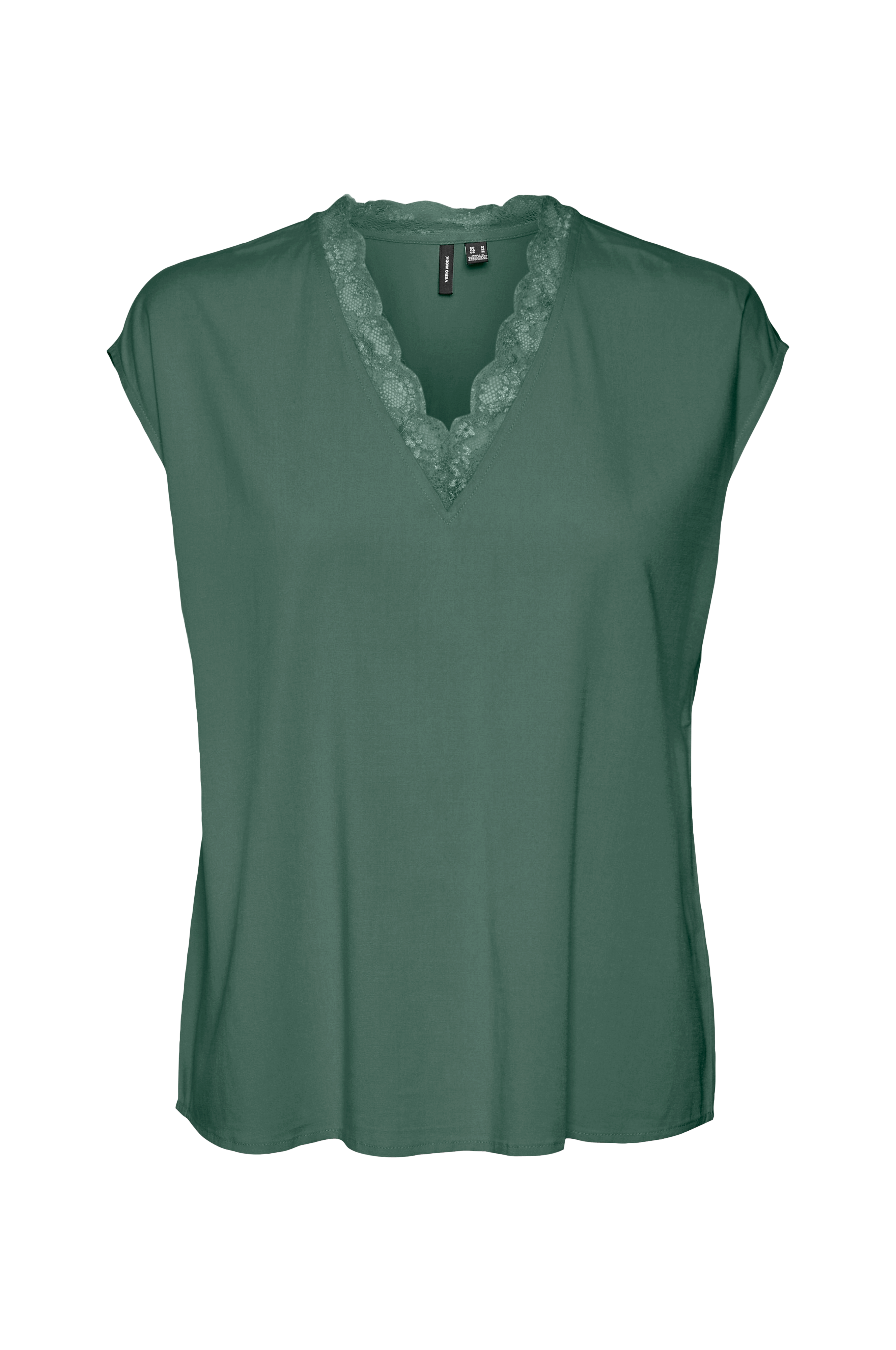 • Top i viskoseblanding• V-udskæring med dekorativ blondekant• Korte ærmer• Normal pasform