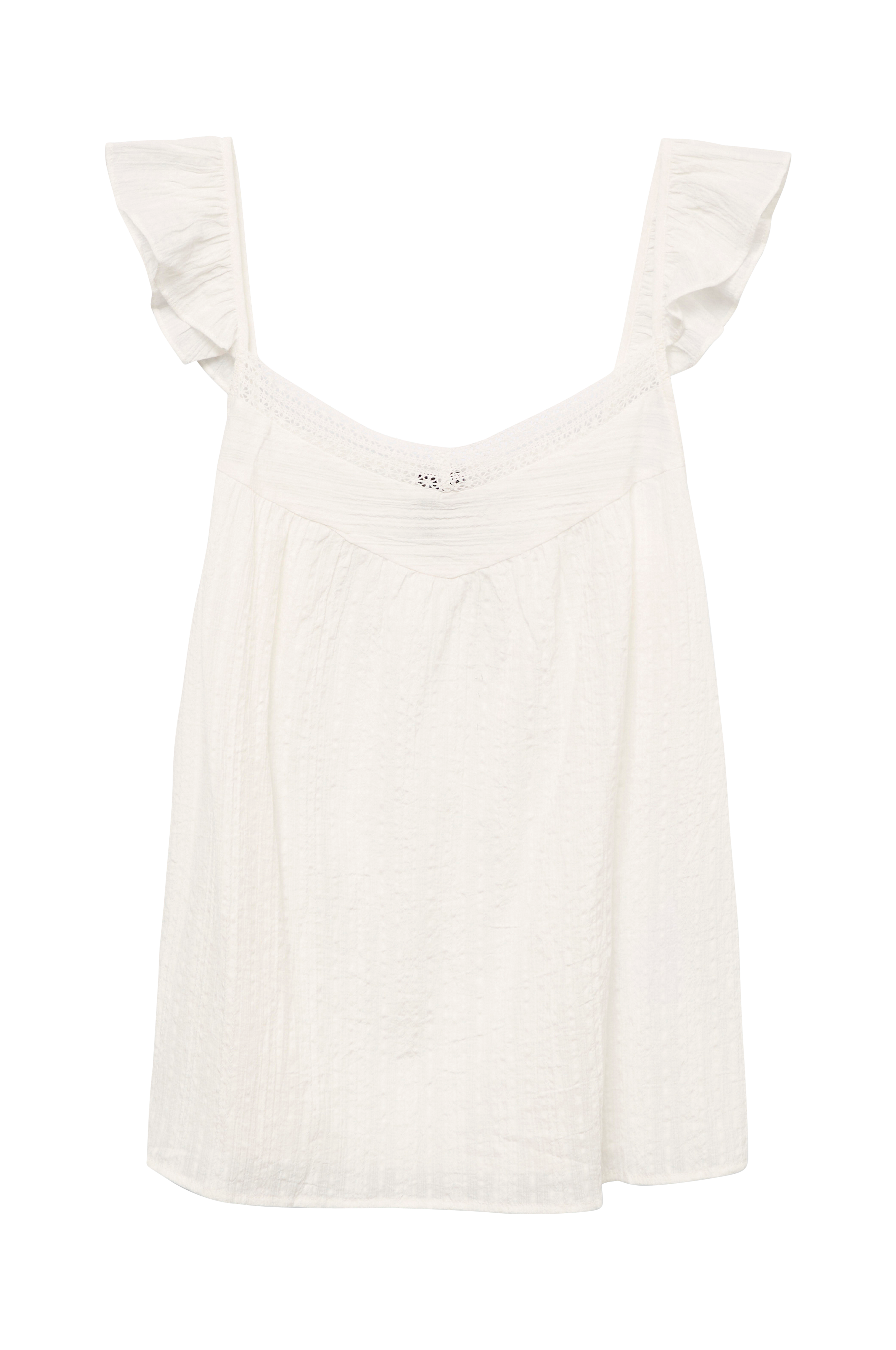 • Ærmeløs model med svaj• Volanter over skuldrene• Blonde i halsen