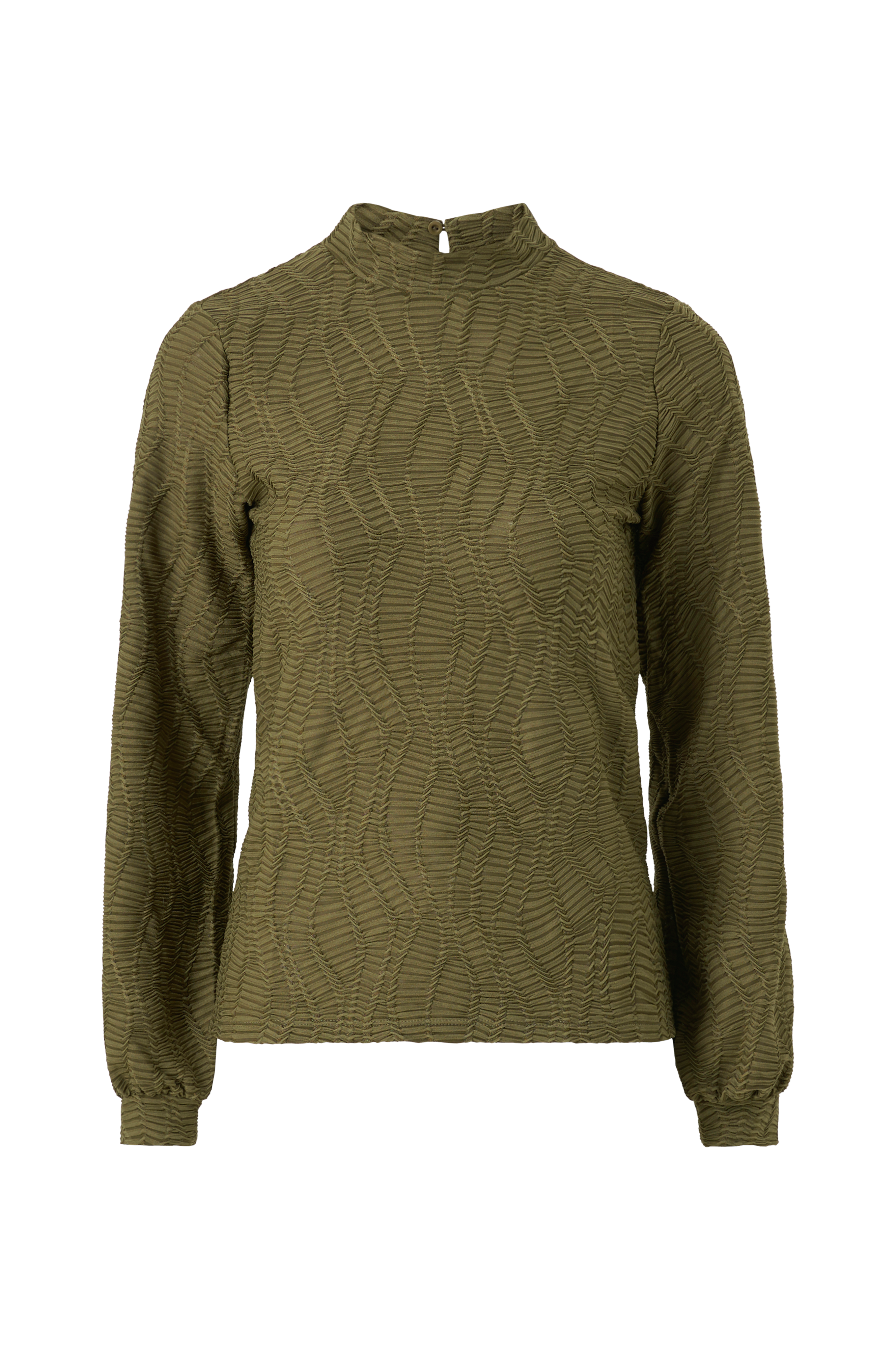 • Mønstervævet model• Halvhøj krave med knapper i nakken• Langt ærme