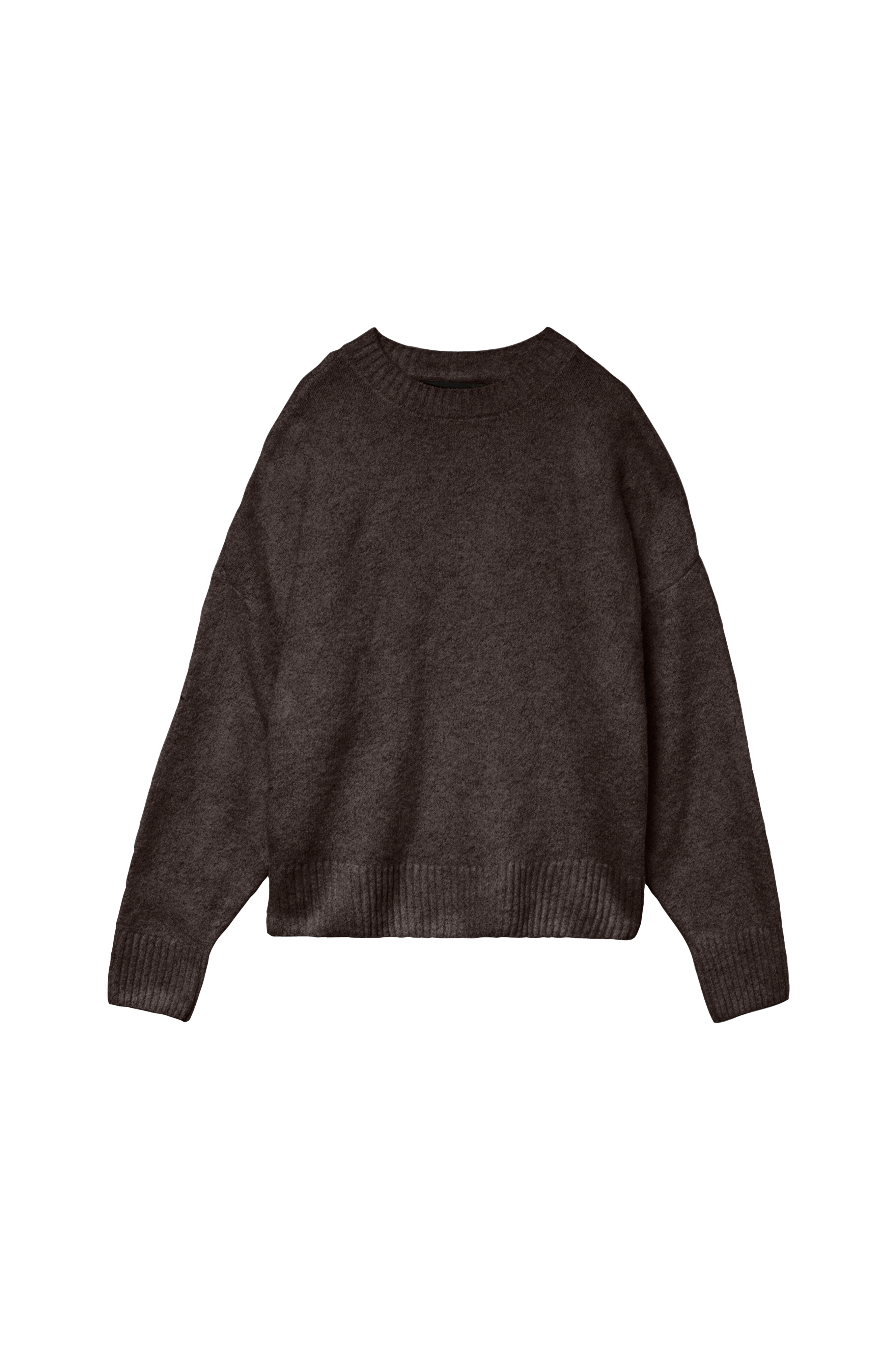 • Strikket trøje• Rund, ribbet halsudskæring• Nedsænkede skuldre• Ribmanchetter ved manchetterne og nederst