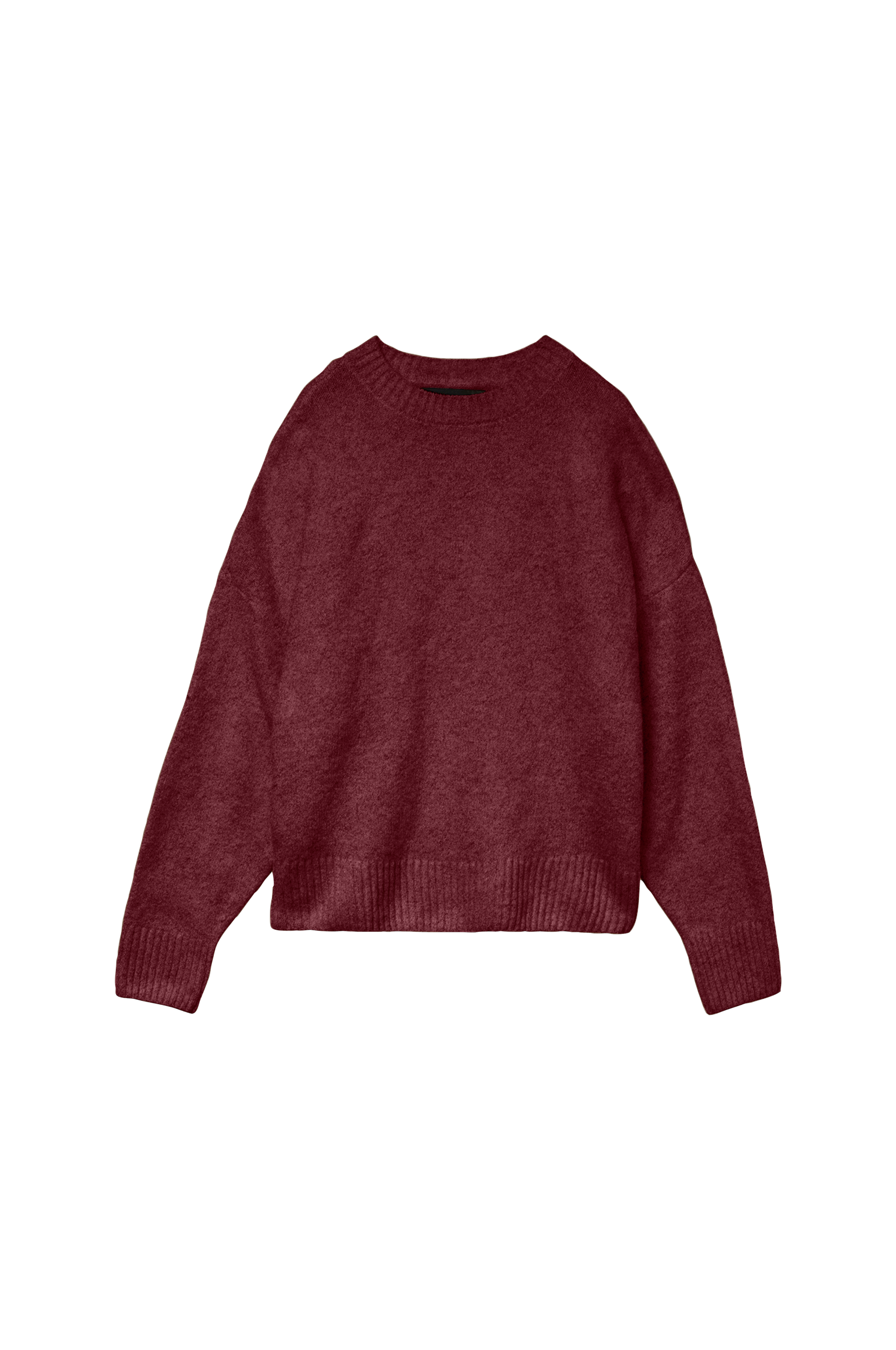 • Strikket trøje• Rund, ribbet halsudskæring• Nedsænkede skuldre• Ribmanchetter ved manchetterne og nederst