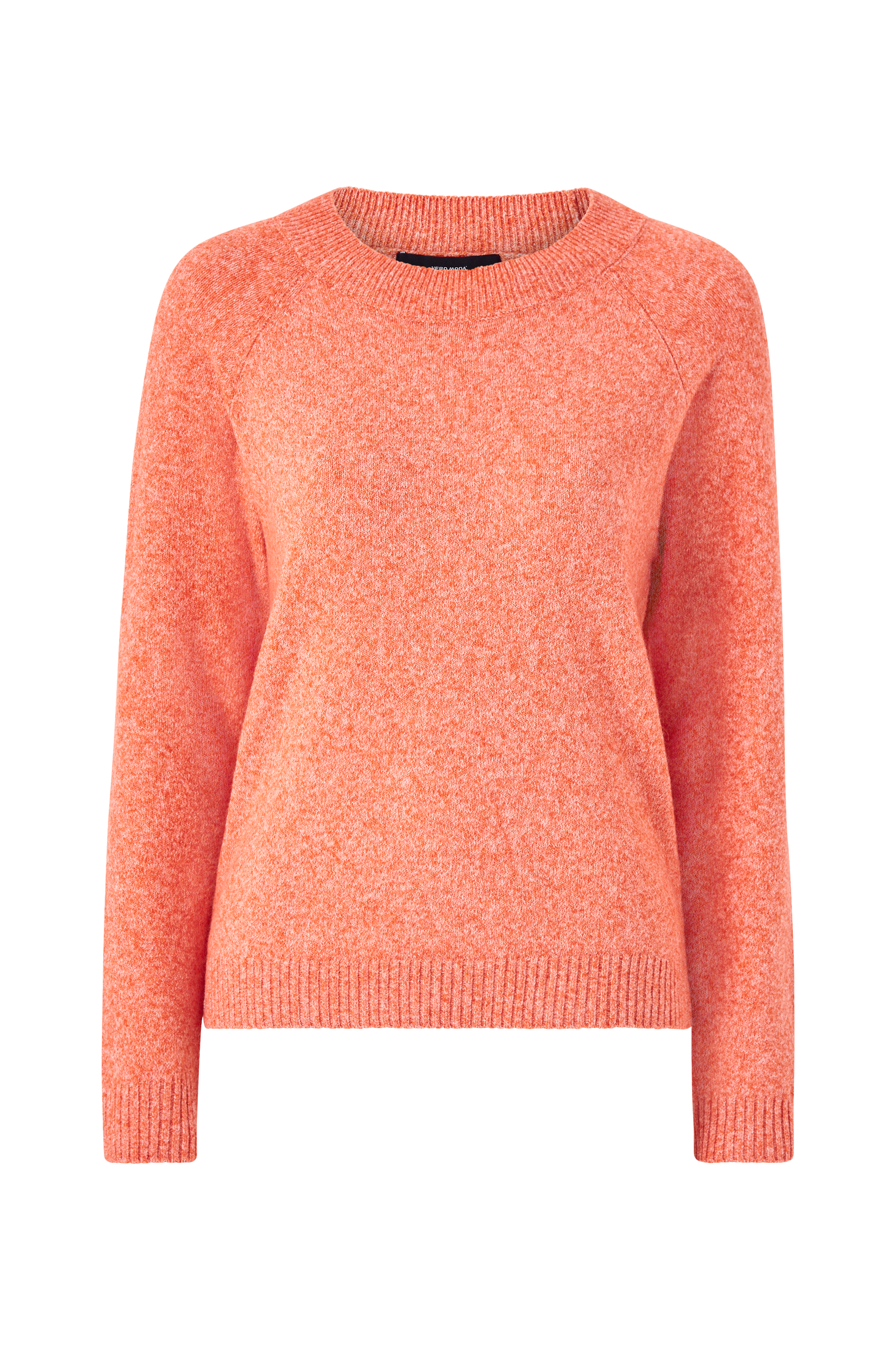Trøje vmDoffy LS O-Neck Blouse fra Vero Moda. Lige model med langt, raglanskåret ærme. Rund hals med ribstrikket kant samt ribstrik også i ærmekanten og kant forneden. Blød, glatstrikket kvalitet. Længde ca. 62 cm i str. S.