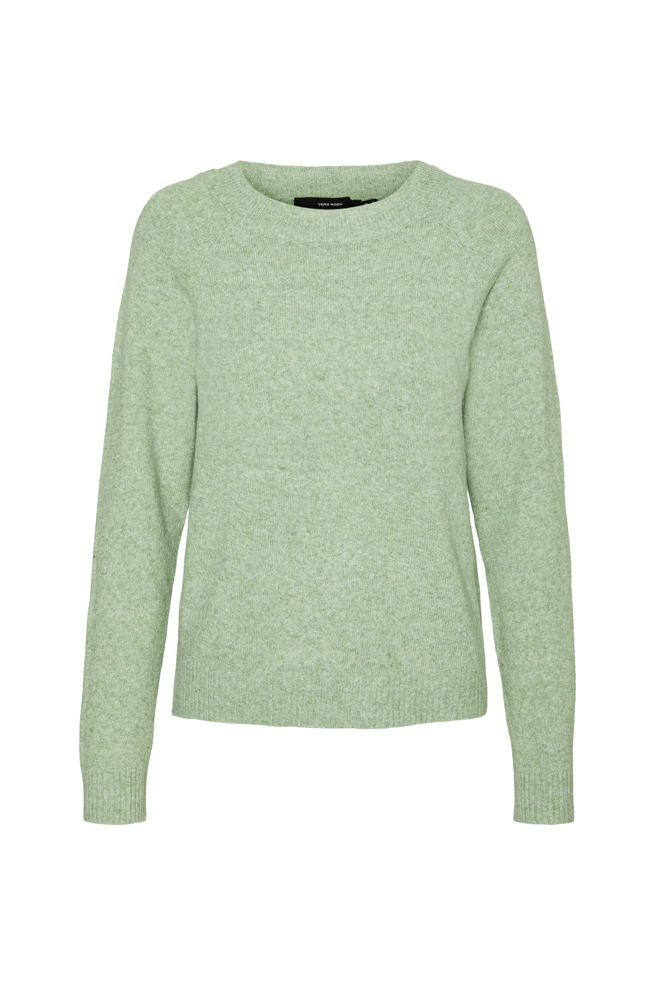 Trøje vmDoffy LS O-Neck Blouse fra Vero Moda. Lige model med langt, raglanskåret ærme. Rund hals med ribstrikket kant samt ribstrik også i ærmekanten og kant forneden. Blød, glatstrikket kvalitet. Længde ca. 62 cm i str. S.