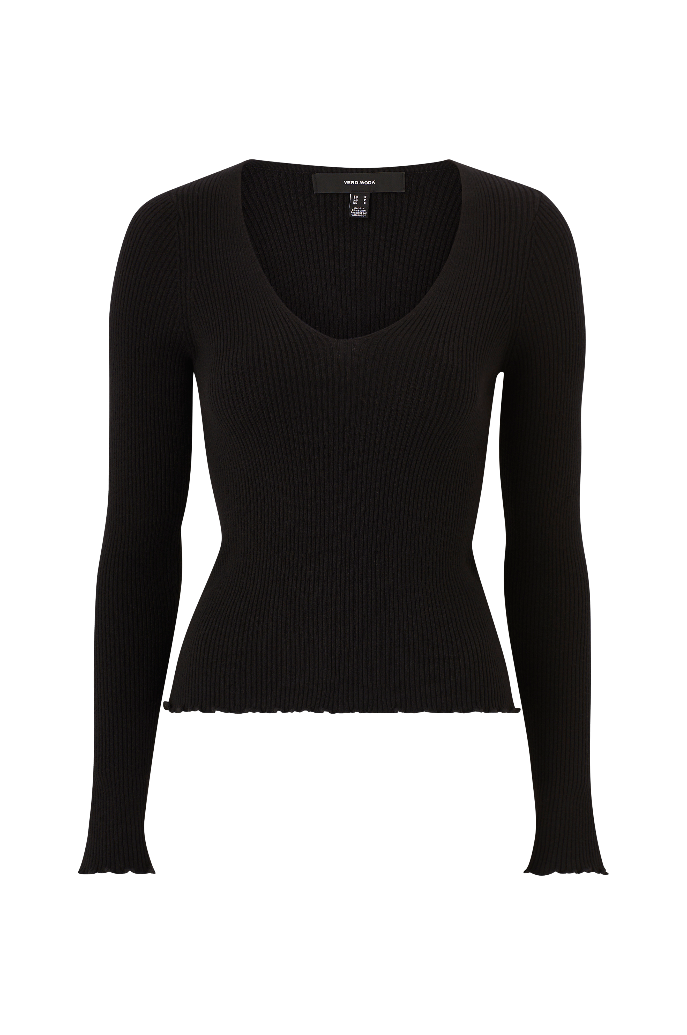 • Ribstrikket trøje • Smal pasform • V-udskæring • Bølget kant ved manchetterne og nederst • Blød kvalitet • Produktet indeholder viskose fra Livaeco by Birla Cellulose™, en syntetisk cellulosefiber af træmasse der kommer fra kontrolleret og ansvarsfuldt skovbrug.