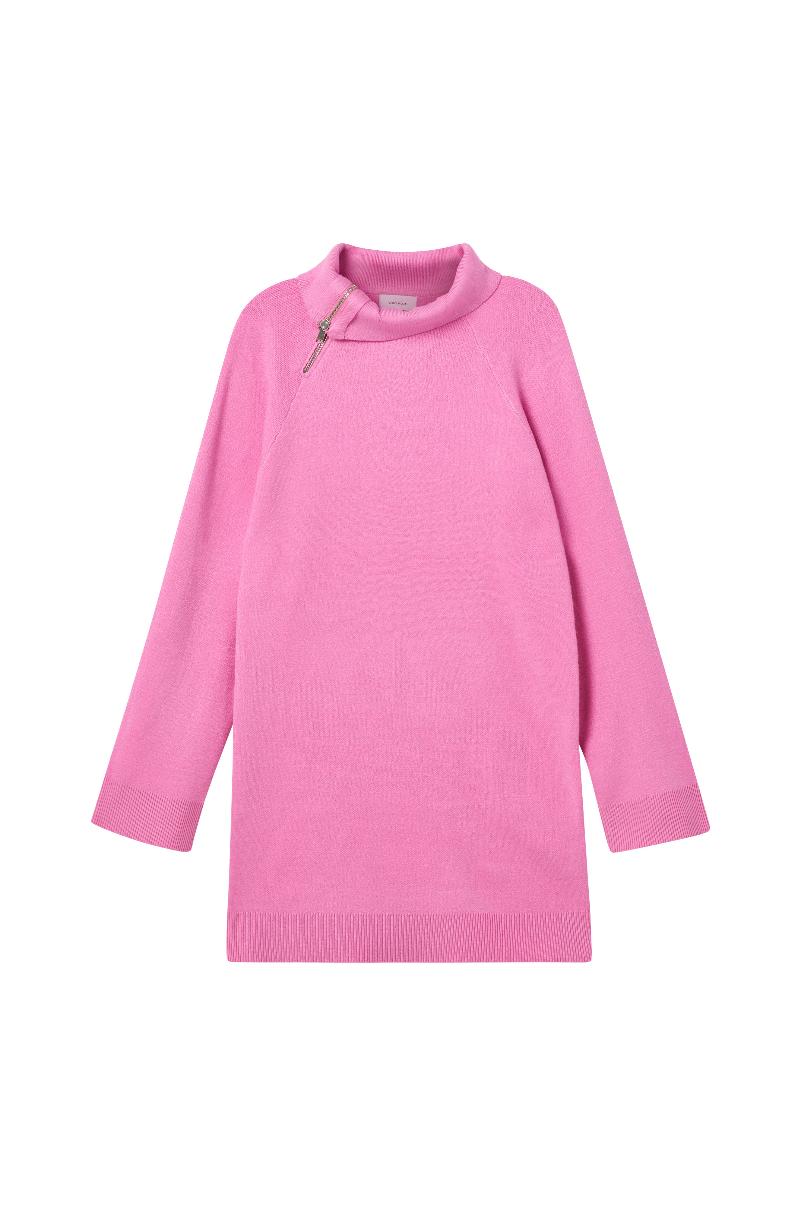 • Strikket trøje• Ribbet turtleneck med diagonal, kort lynlås• Raglanærmer• Ribkanter ved ærmeafslutningerne og nederst