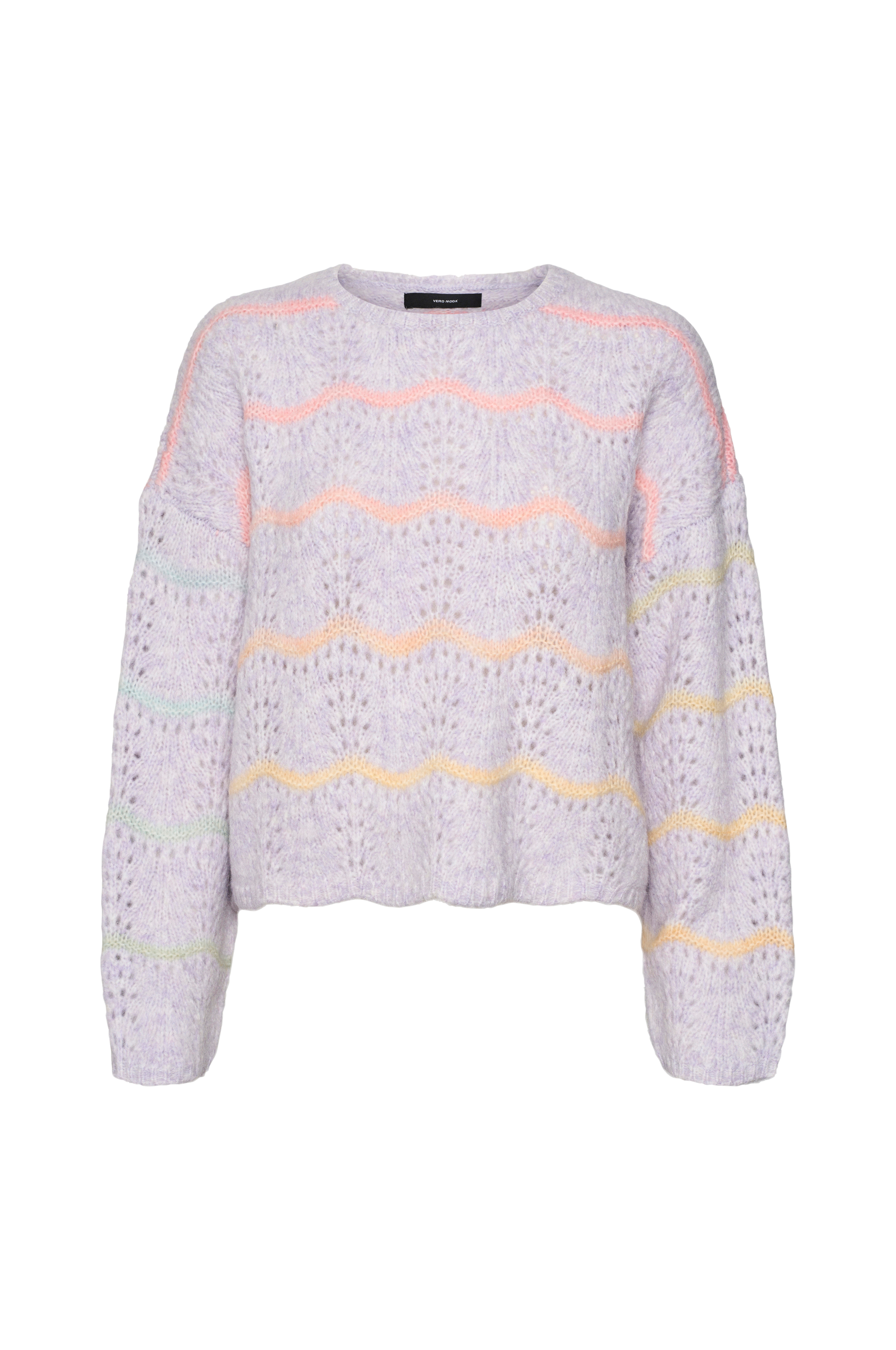 • Kort model med mønsterstrikning• Rund hals• Nedsænket skulder med langt, lige ærme• Bølget søm