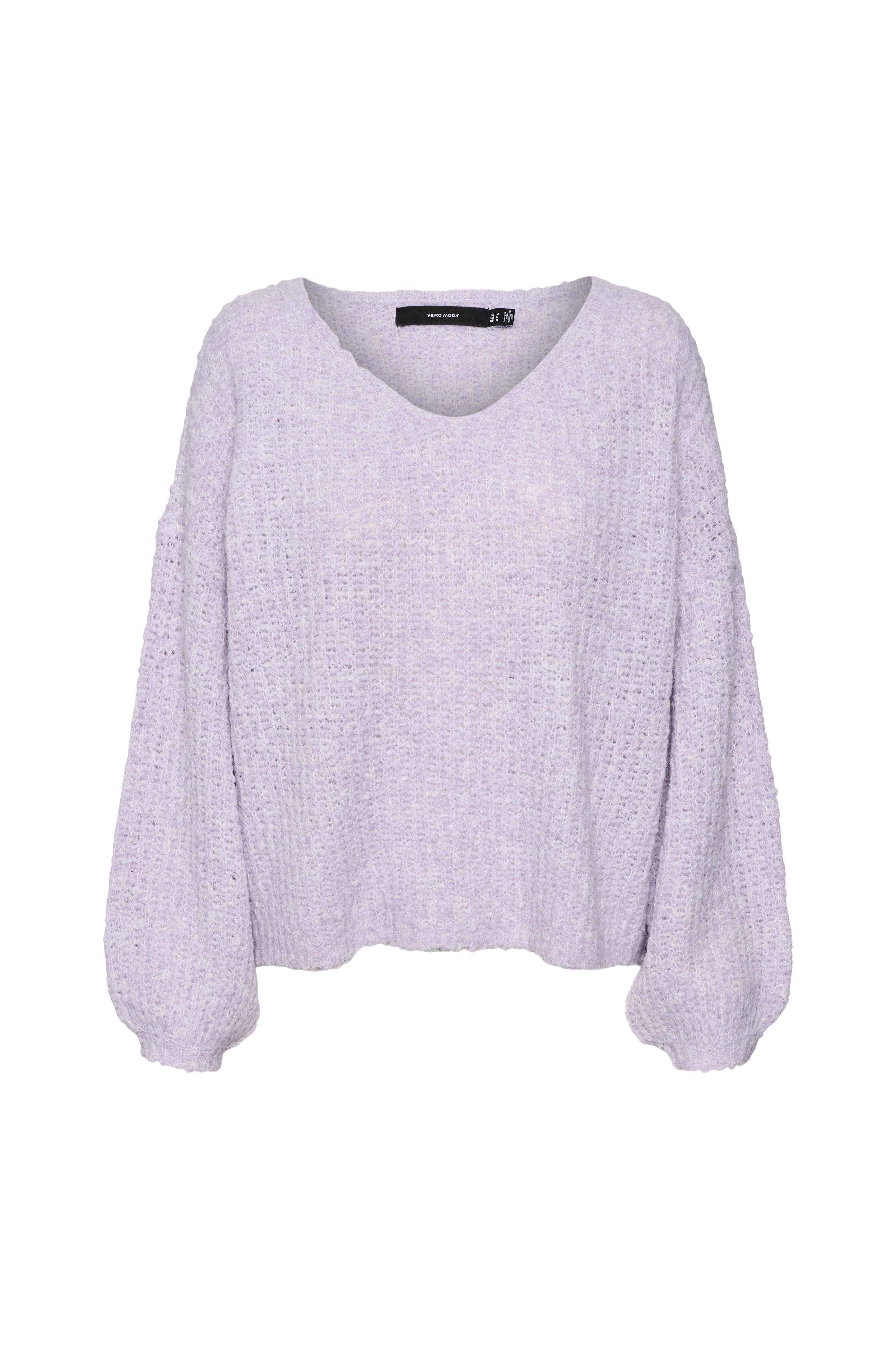 • Bred, mønstervævet model• V-formet halsudskæring• Nedsænket skulder• Langt, bredt ærme