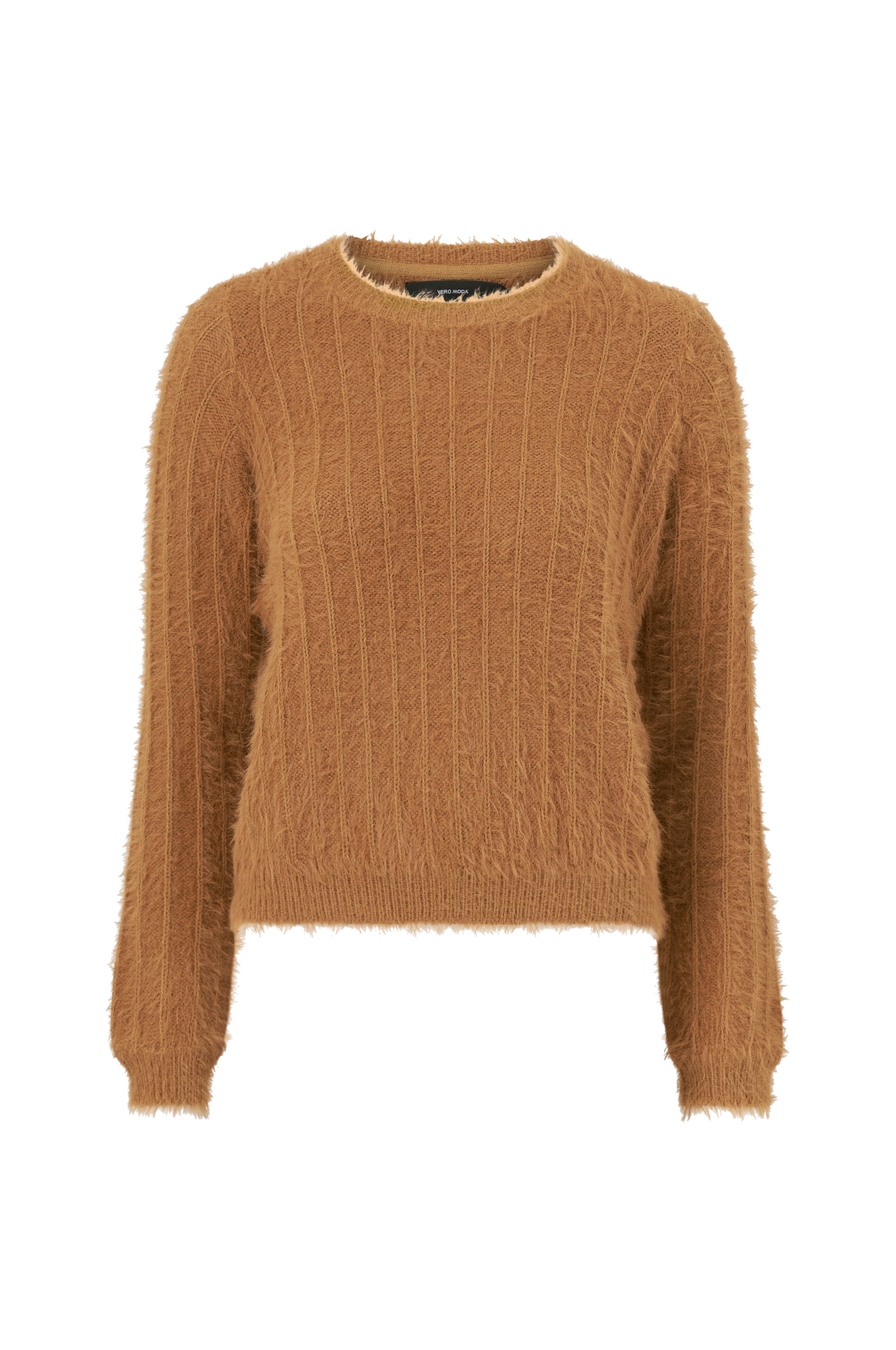 Trøje vmLapoilu LS O-neck Blouse fra Vero Moda. Model i loddent garn med smalle, strikkede striber over det hele. Rund hals med ribkant og ekstra langt ærme med ribstrikket ærmekant.
