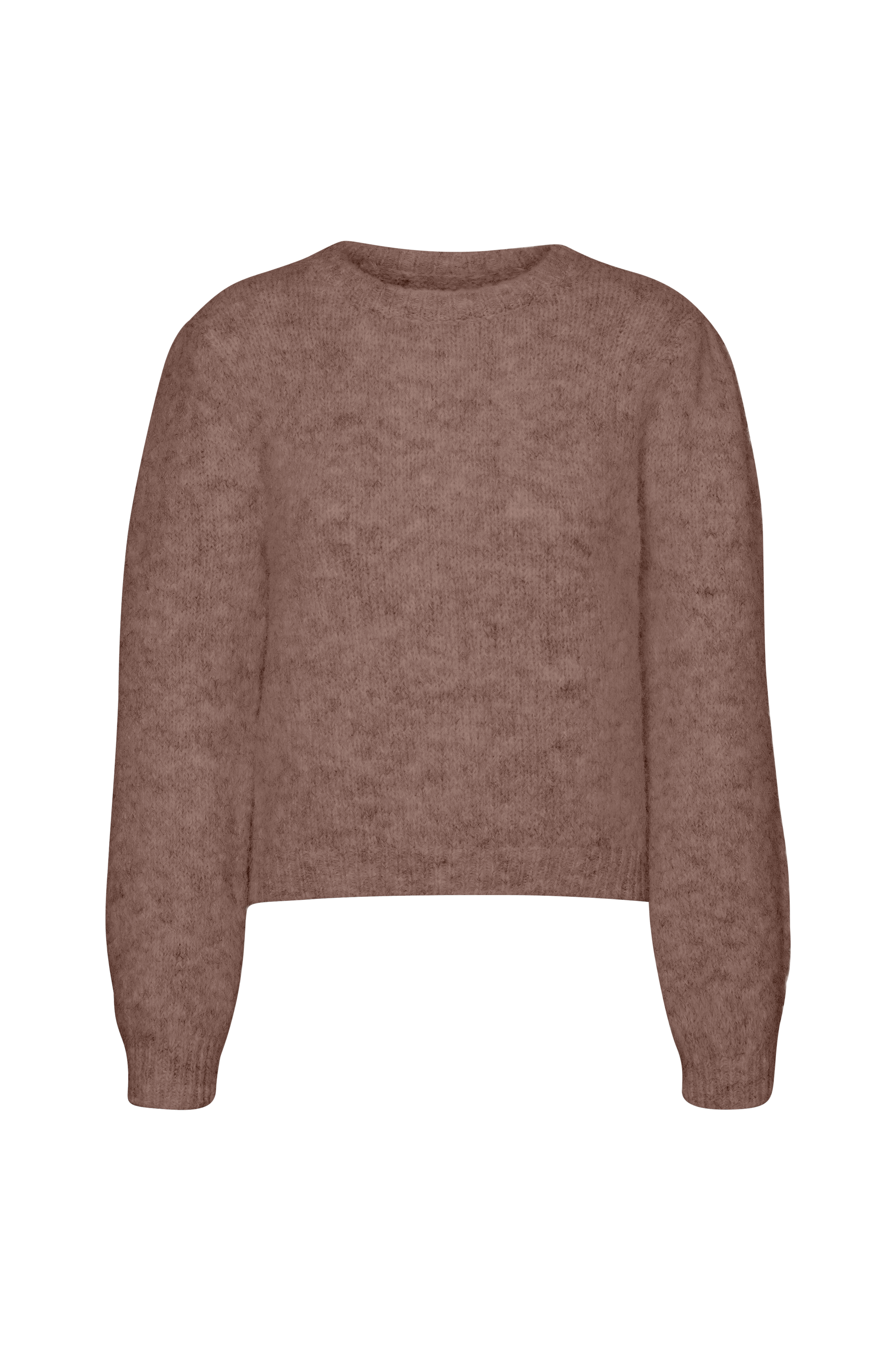 • Lige model• Rund hals med ribkant• Langt ærme• Ribstrik ved nederste kant og ved manchetterne