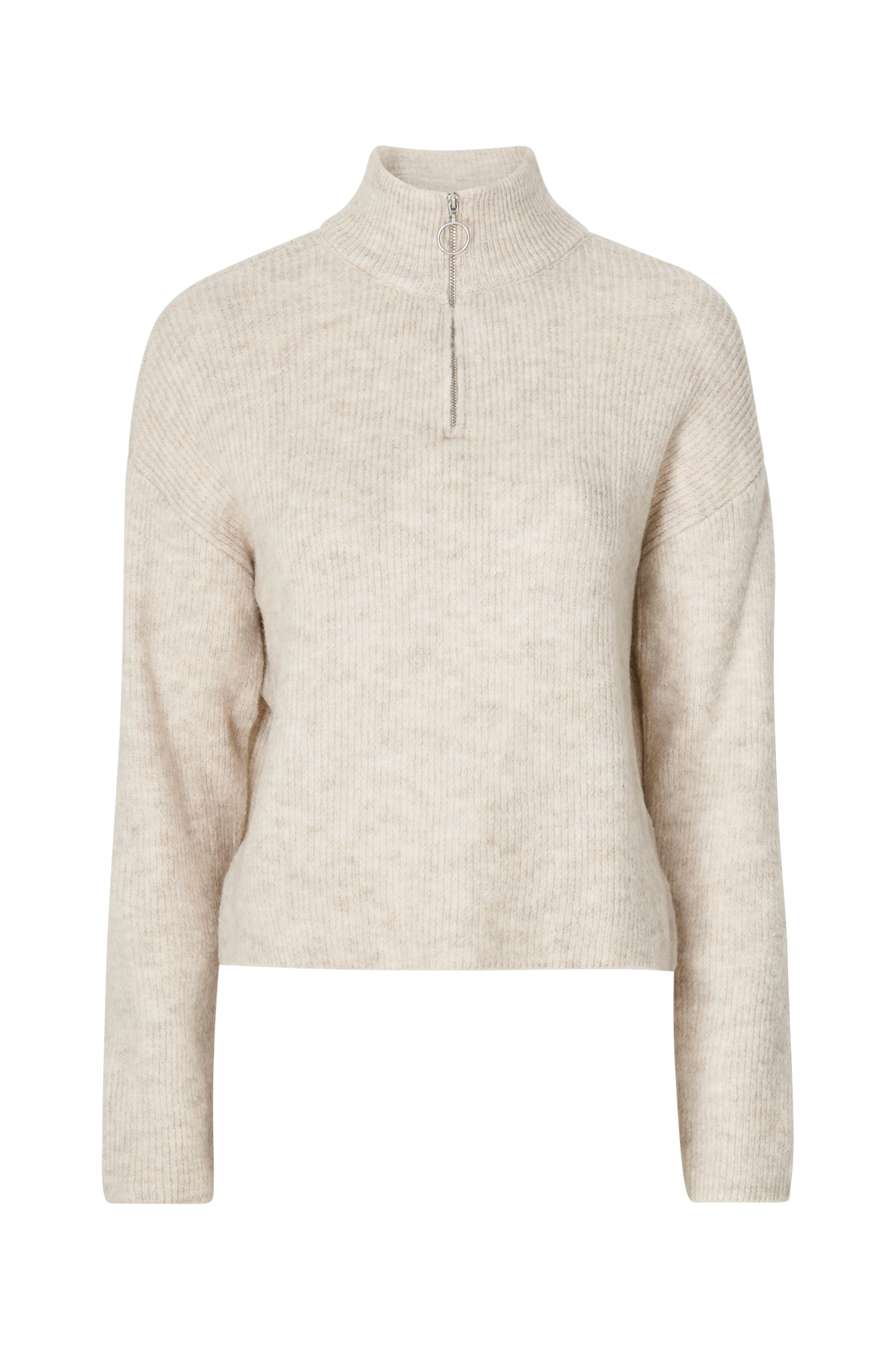 • Strikket trøje• Kort, firkantet pasform• Ståkrave med en lynlås• Nedsænkede skuldre