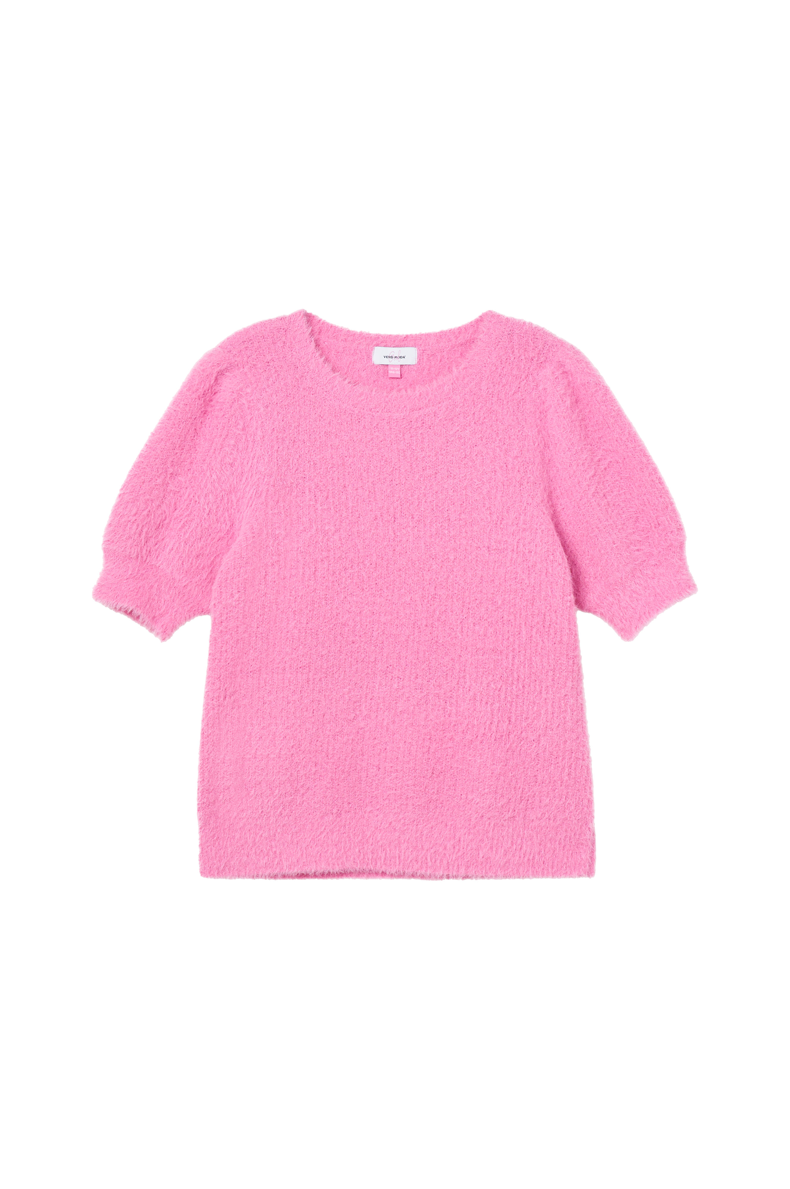 • Strikket trøje med håret overflade• Korte ballonærmer