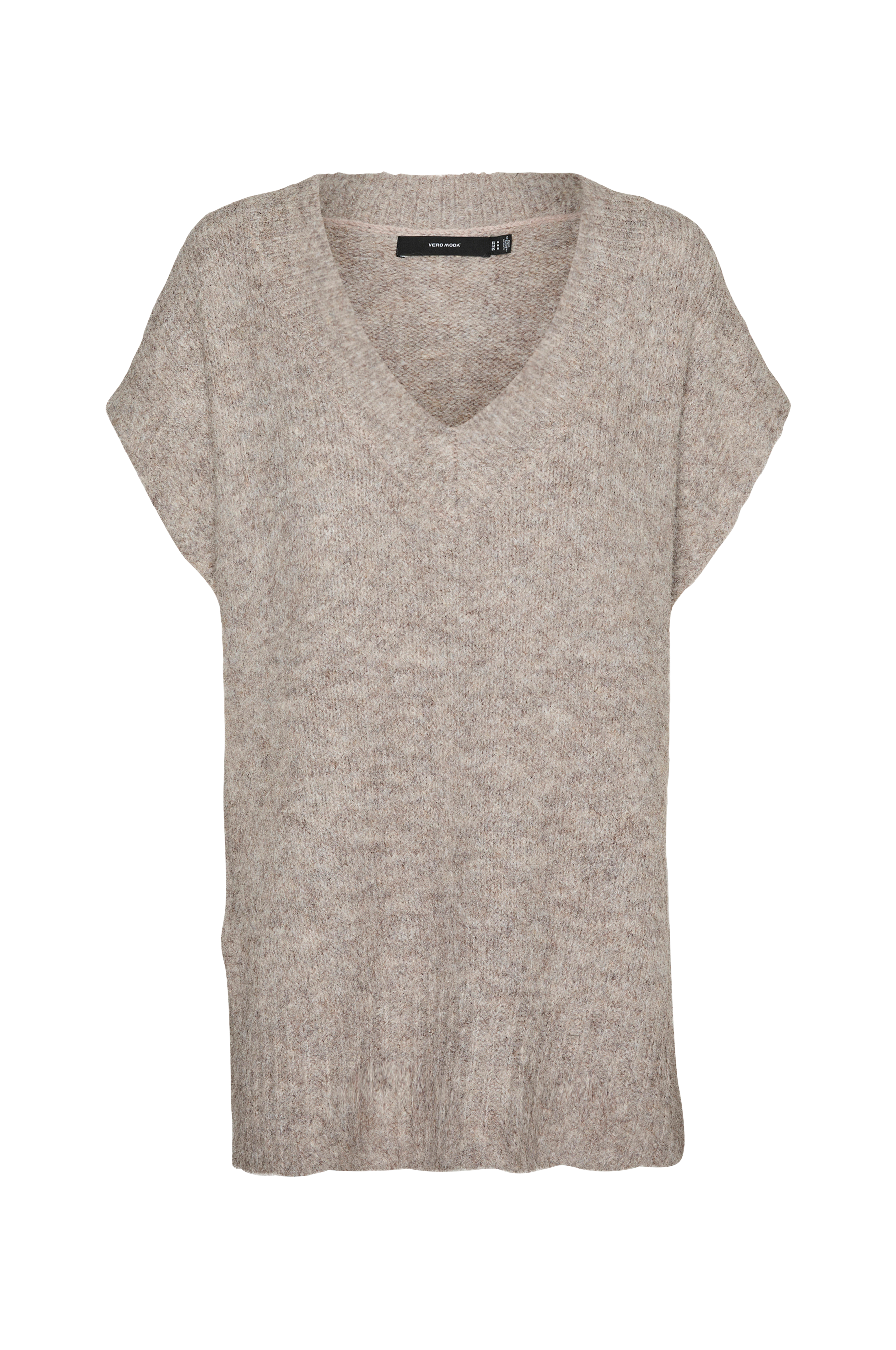 • Fintstrikket vest i blødt, luftigt materiale med v-formet halsudskæring• Ribstrik ved nederste kant og i halsen• Slids i siderne