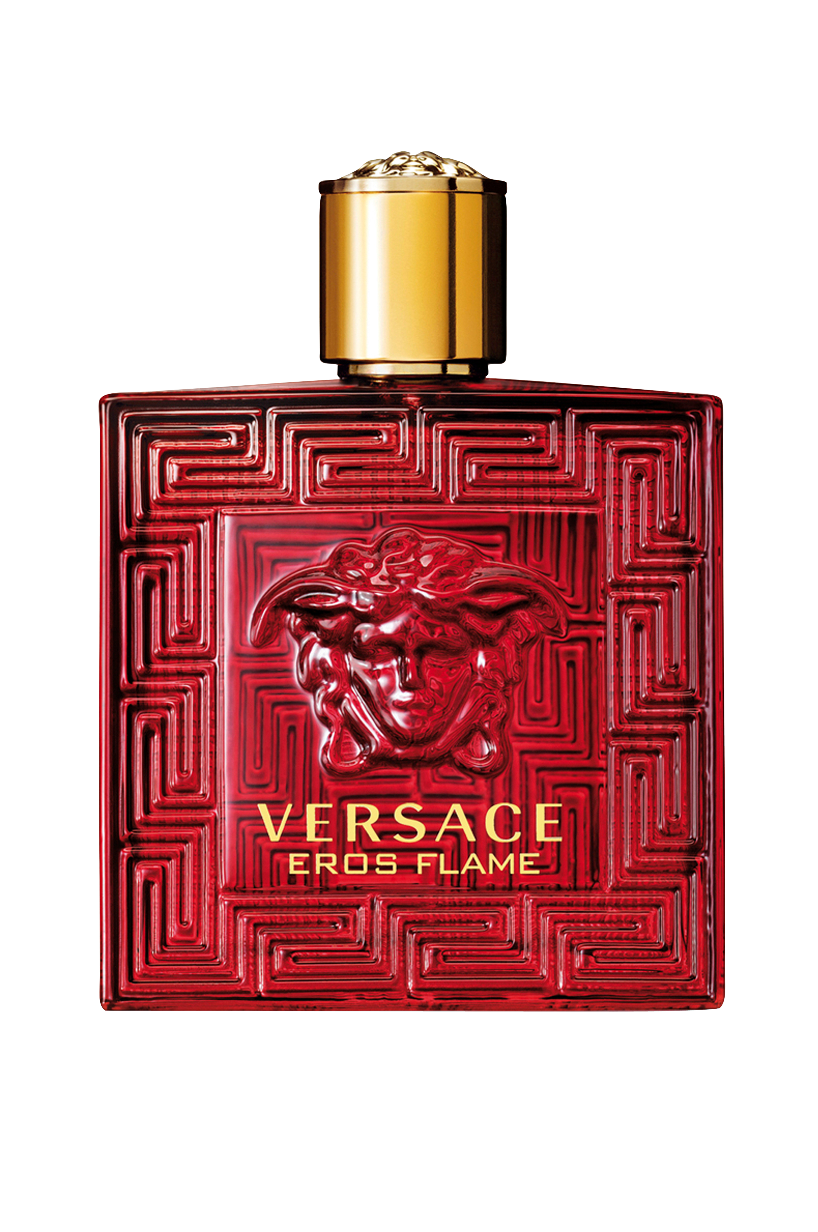 Eros Flame karakteriseres ved stærke kontraster, hvor de mest fantastiske og elegante noter beriger og forstærker hinanden. Duften indleder med friske citrusnoter som får varme fra sort peber fra Madagaskar og aromatisk rosmarin. Det passionerede hjerte består af pepperwood, geranium og rose. Basen hviler på noter af træ, krydderi og røget aroma fra patchouli og vetiver. Sammen møder de tonkabønne som giver den bløde og runde base en fin sødme.