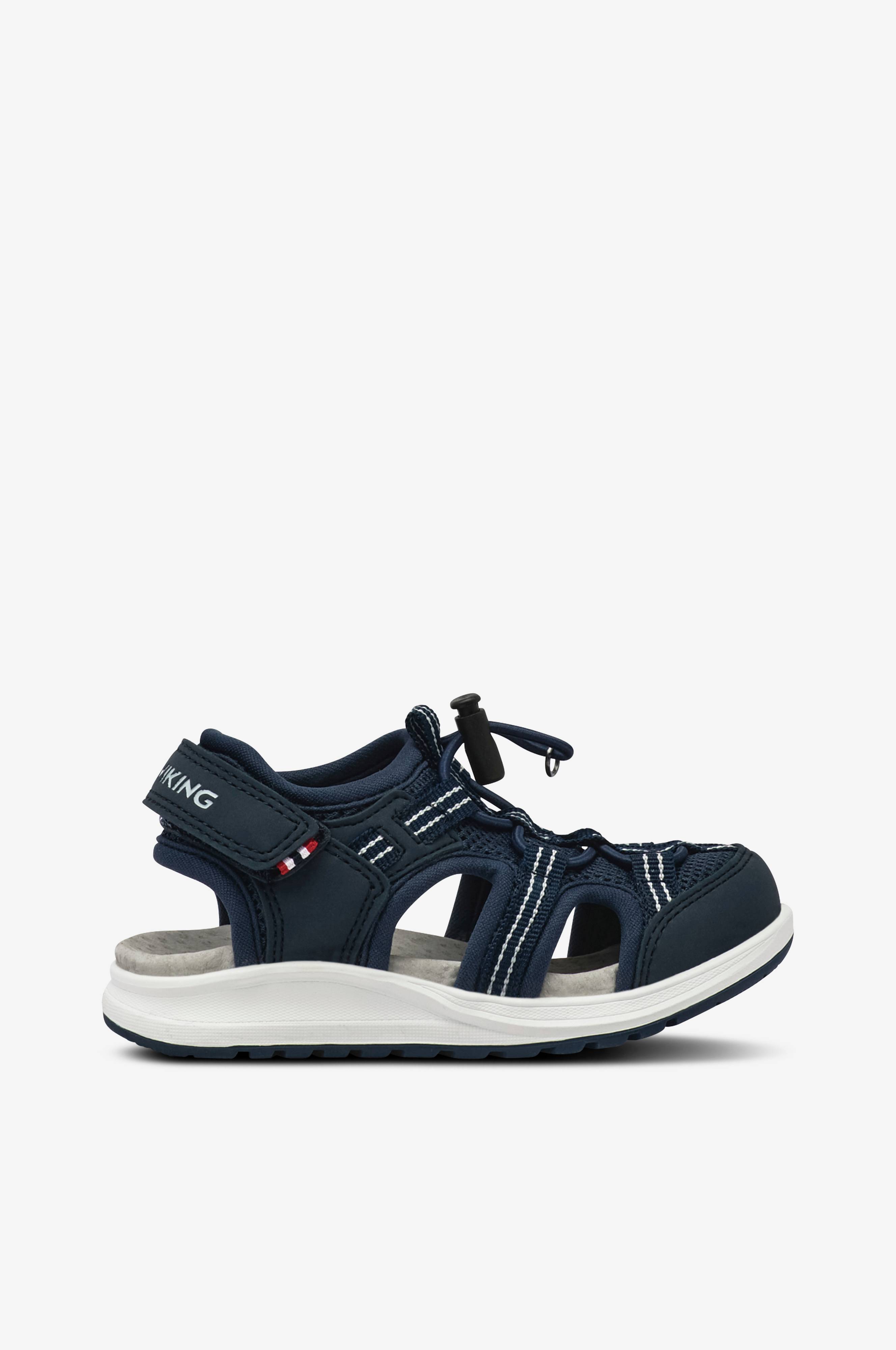 • Sandaler med beskyttende snude• Elastisk hurtigsnøring med stopper• Justérbar hælrem med velcrolukning• Fodseng i ruskind• Stødsikker EVA mellemsål• Ydersål i gummi