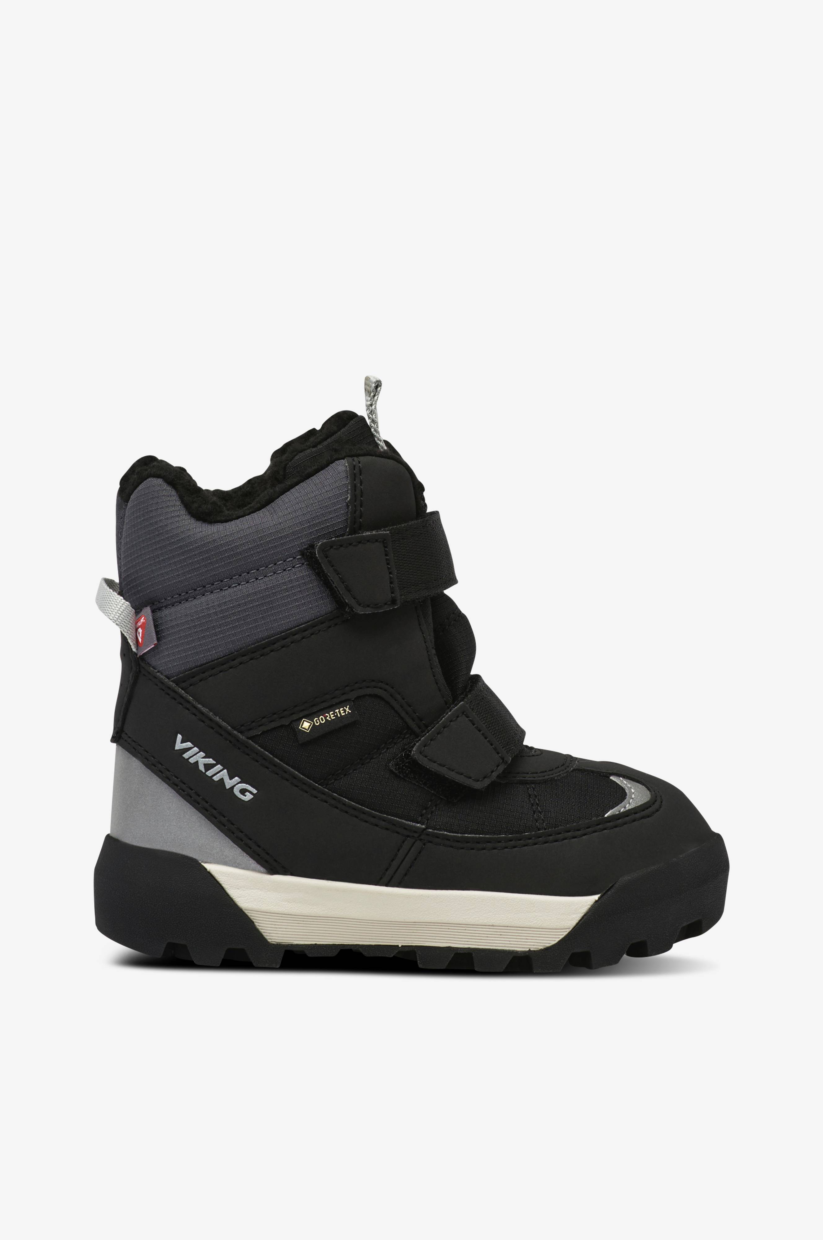 • Varmt forede, lete vinterstøvler med vandtæt GORE-TEX®-membran • Høj åndbarhed • Øvredel i tekstil og kunststof • To justérbare velcrobånd • Reflekterende detaljer • Træksnore bag på skaftet og på pløsen • Isolerende, stødsikker EVA mellemsål • Skridsikker ydersål i gummi • Varm isolering med Primaloft Gold