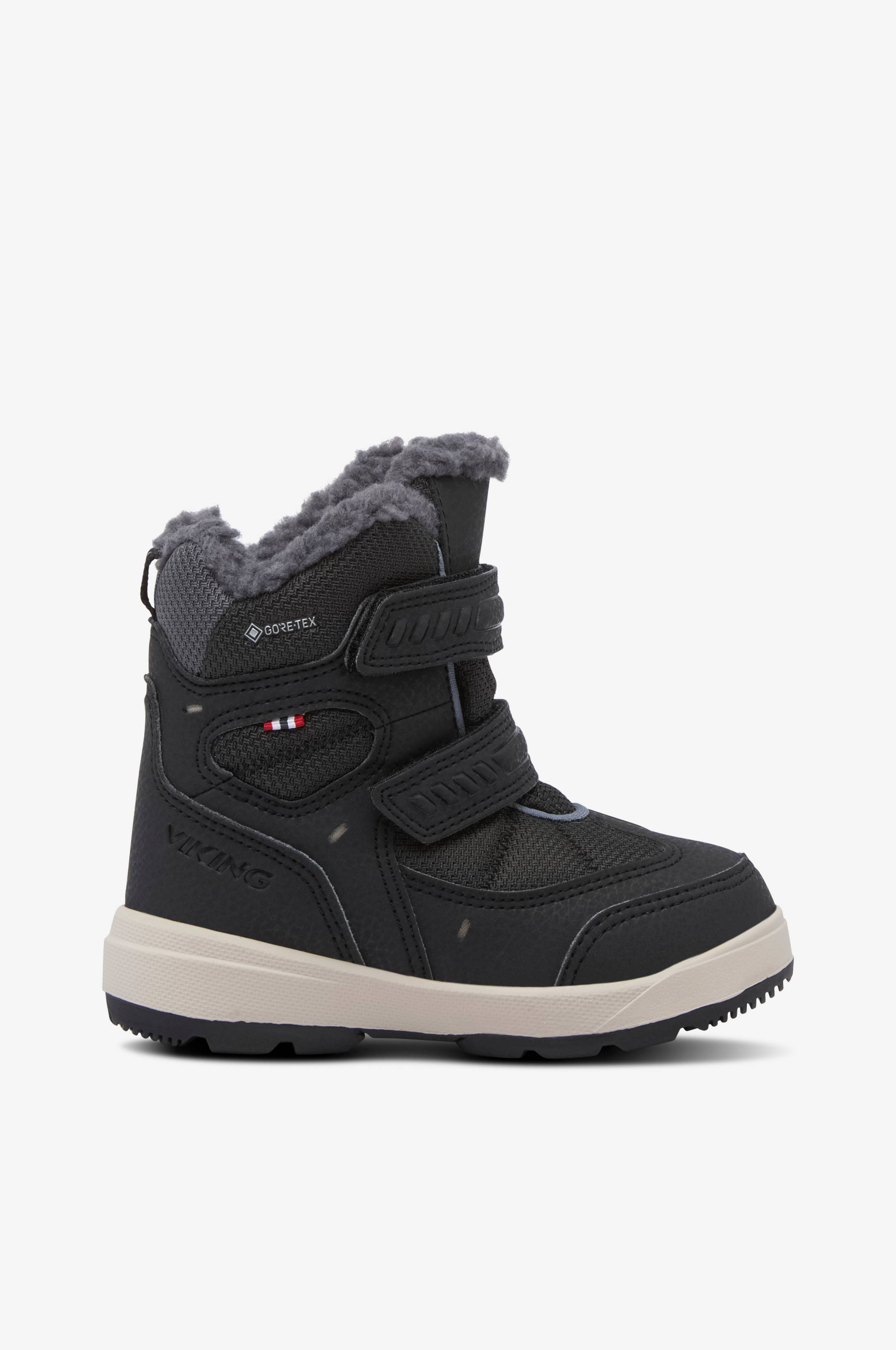 • Varmt forede vinterstøvler med vandtæt GORE-TEX®-membran • Høj åndbarhed • Øvredel i tekstil og kunststof • To justérbare velcrobånd • Varmt for i kunstskind • EVA indersål • Skridsikker ydersål i gummi • Kan maskinvaskes ved 30 grader