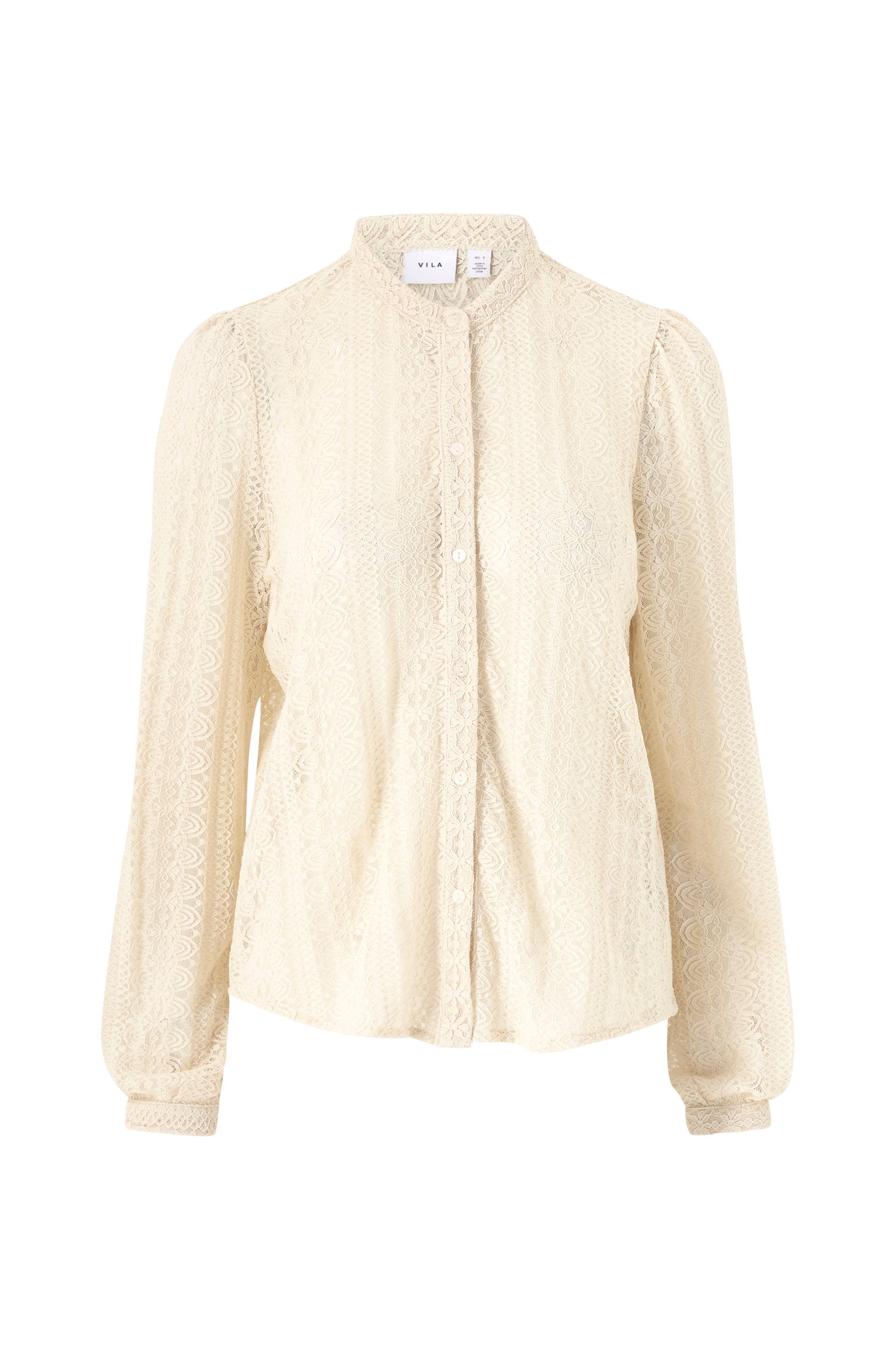 • Transparent bluse i elastisk blonde• Knapper foran• Lange ærmer med tynd manchet
