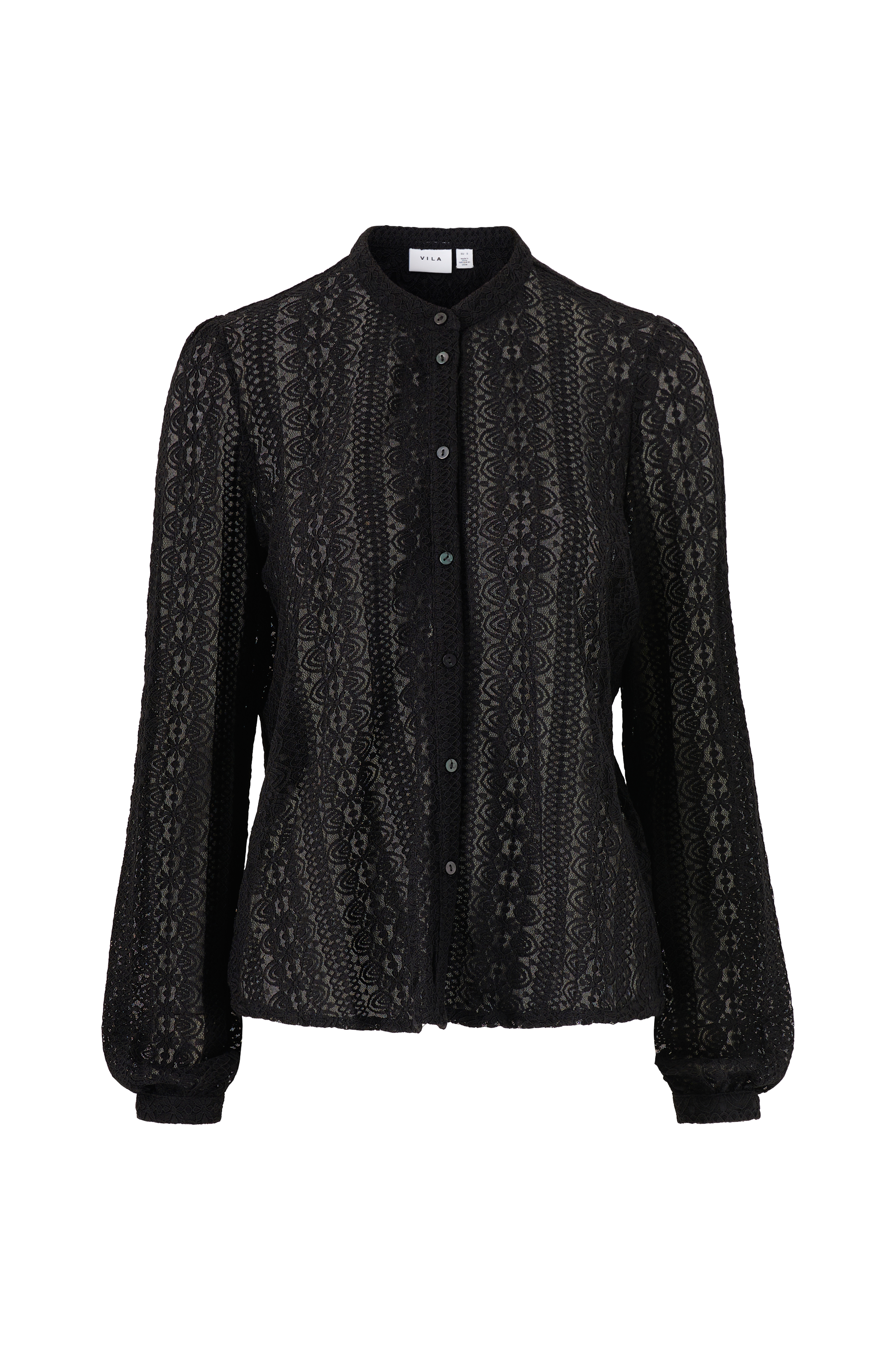 • Transparent bluse i elastisk blonde• Knapper foran• Lange ærmer med tynd manchet