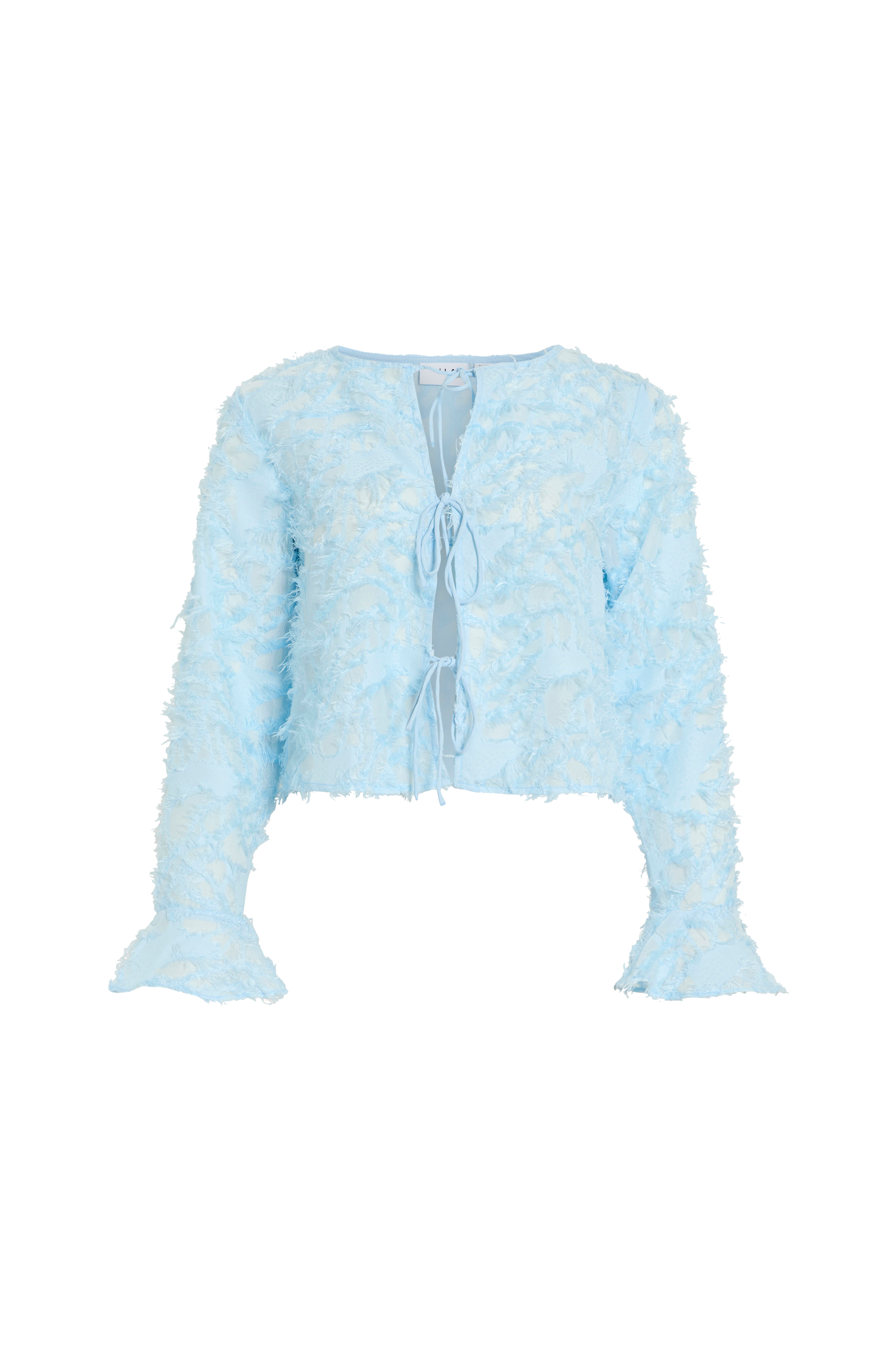 • Langt ærme med volant ved manchetterne