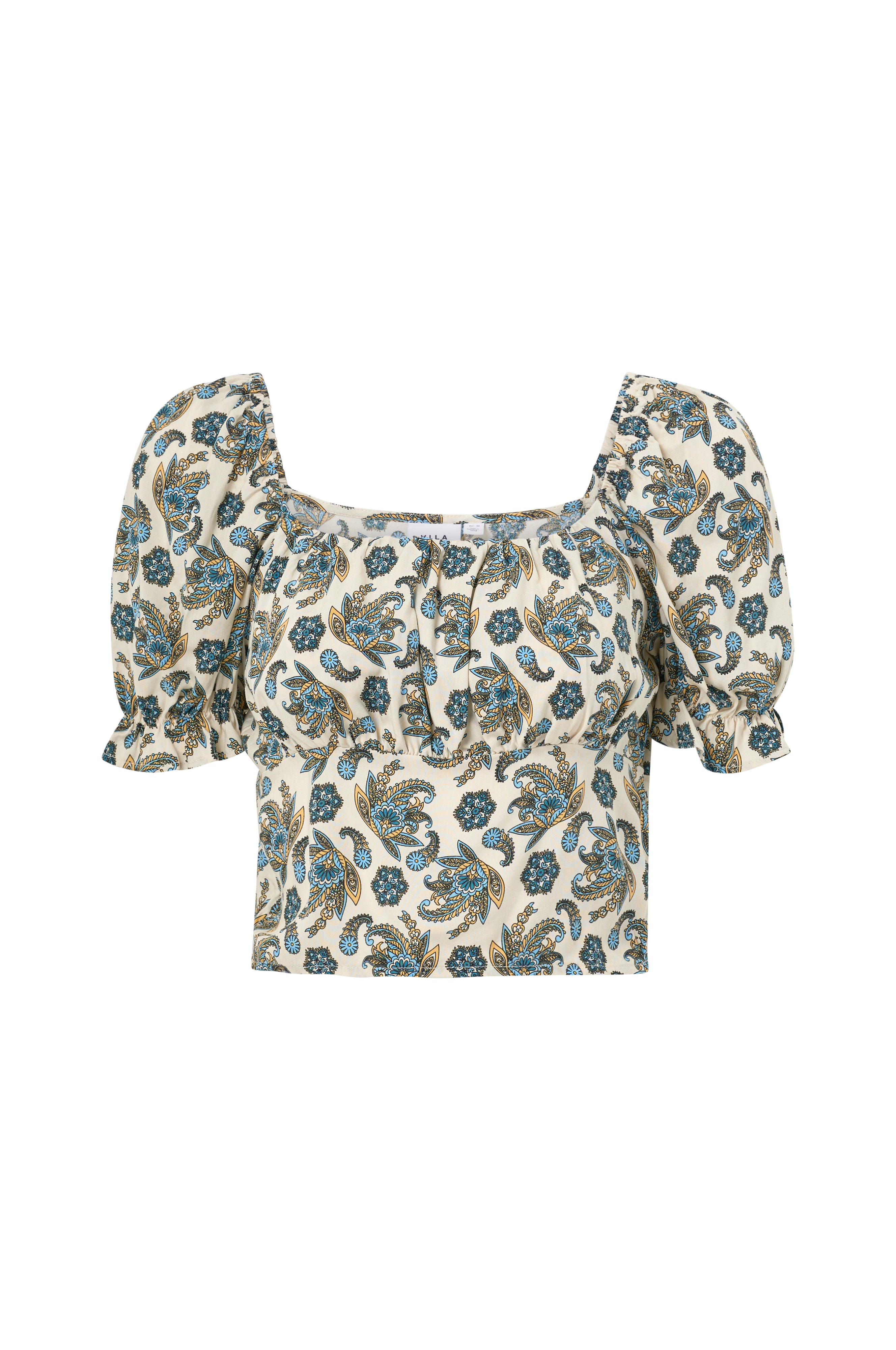 • Bred, firkantet halsudskæring med elastisk bånd hele vejen rundt• Kort ballonærme med elastisk bånd ved manchetterne• Croppet længde• Rynkede detaljer• Lynlås i den ene side