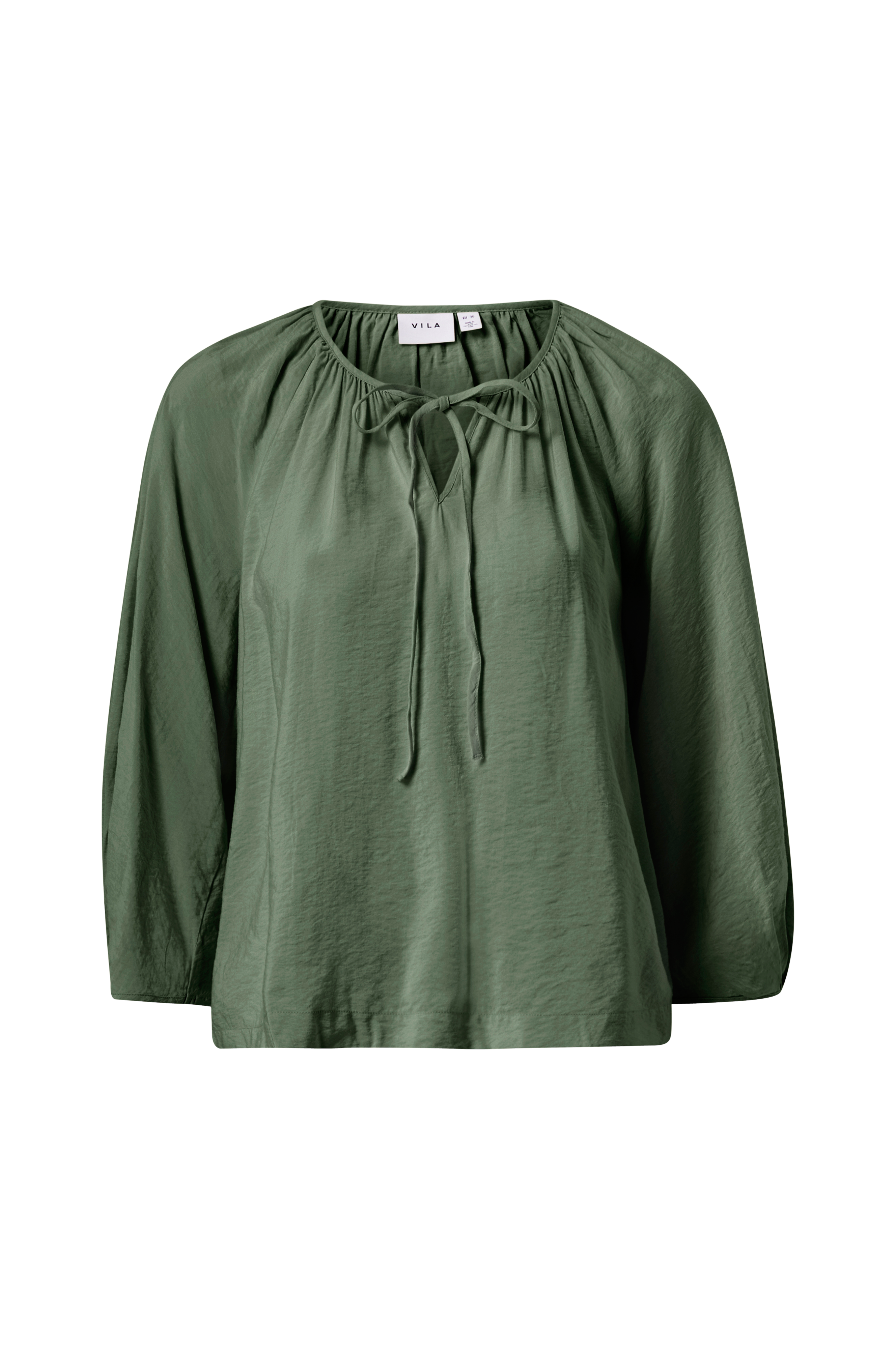 • 3/4 lange ballonærmer • Rynket halsudskæring med ventilation og bindebånd foran • Løs pasform • Produktet indeholder viskose fra Livaeco by Birla Cellulose™, en syntetisk cellulosefiber af træmasse der kommer fra kontrolleret og ansvarsfuldt skovbrug.