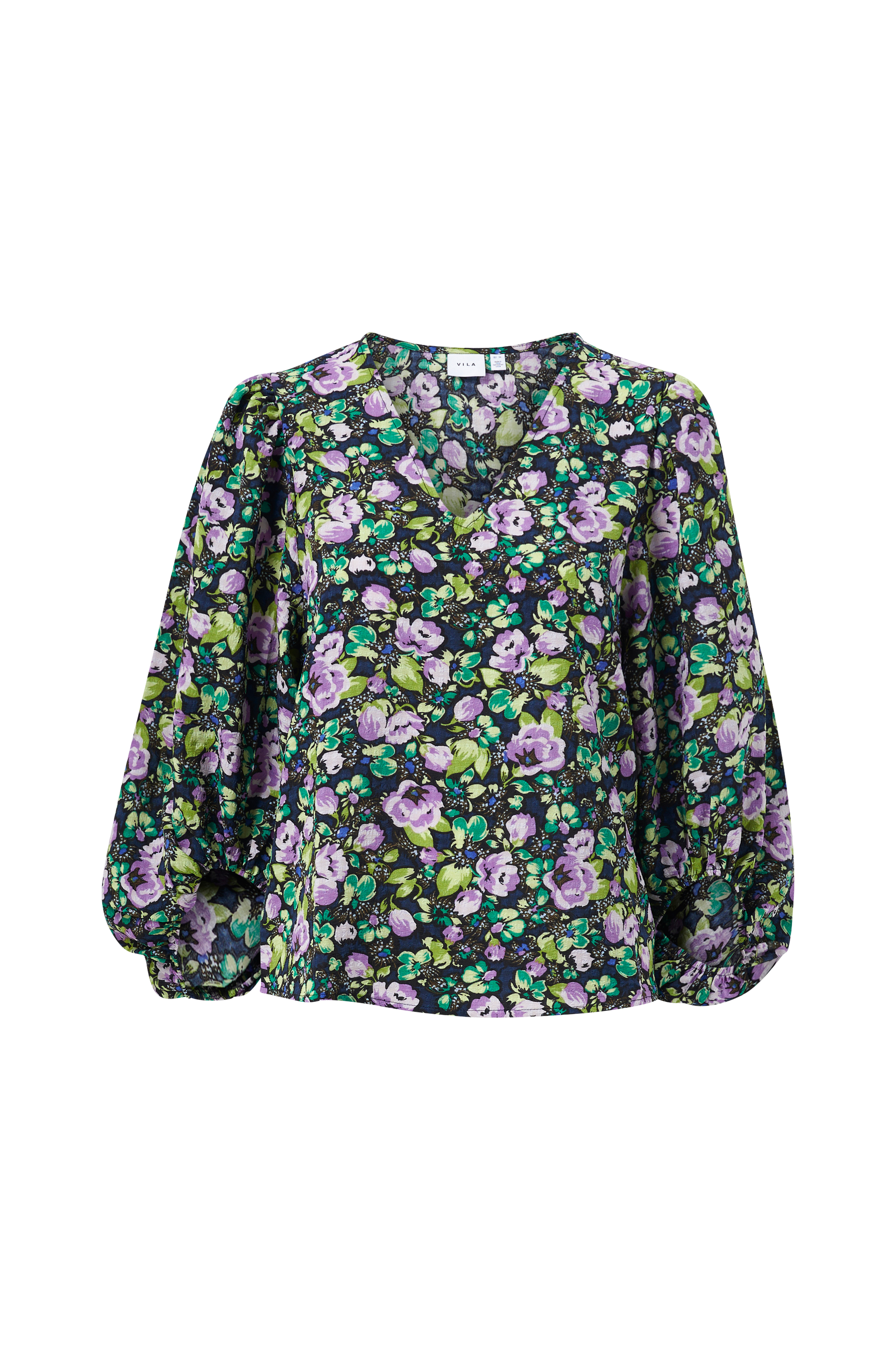 • V-udskæring• 3/4 lange, voluminøse ballonærmer med elastiske manchetter• Samling på skuldrene