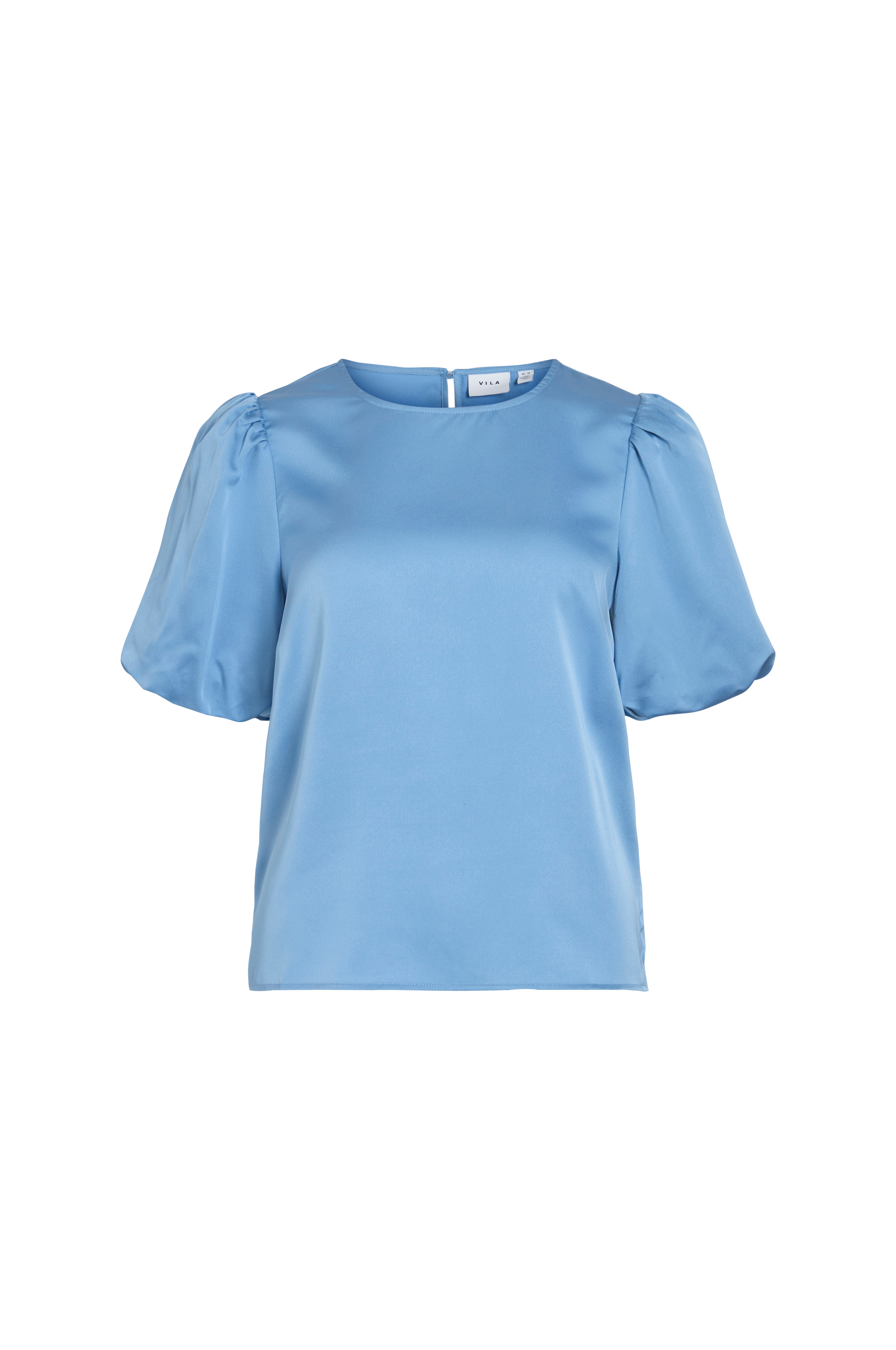 • Lige model i satin• Rund hals med knap i nakken• Kort ballonærme