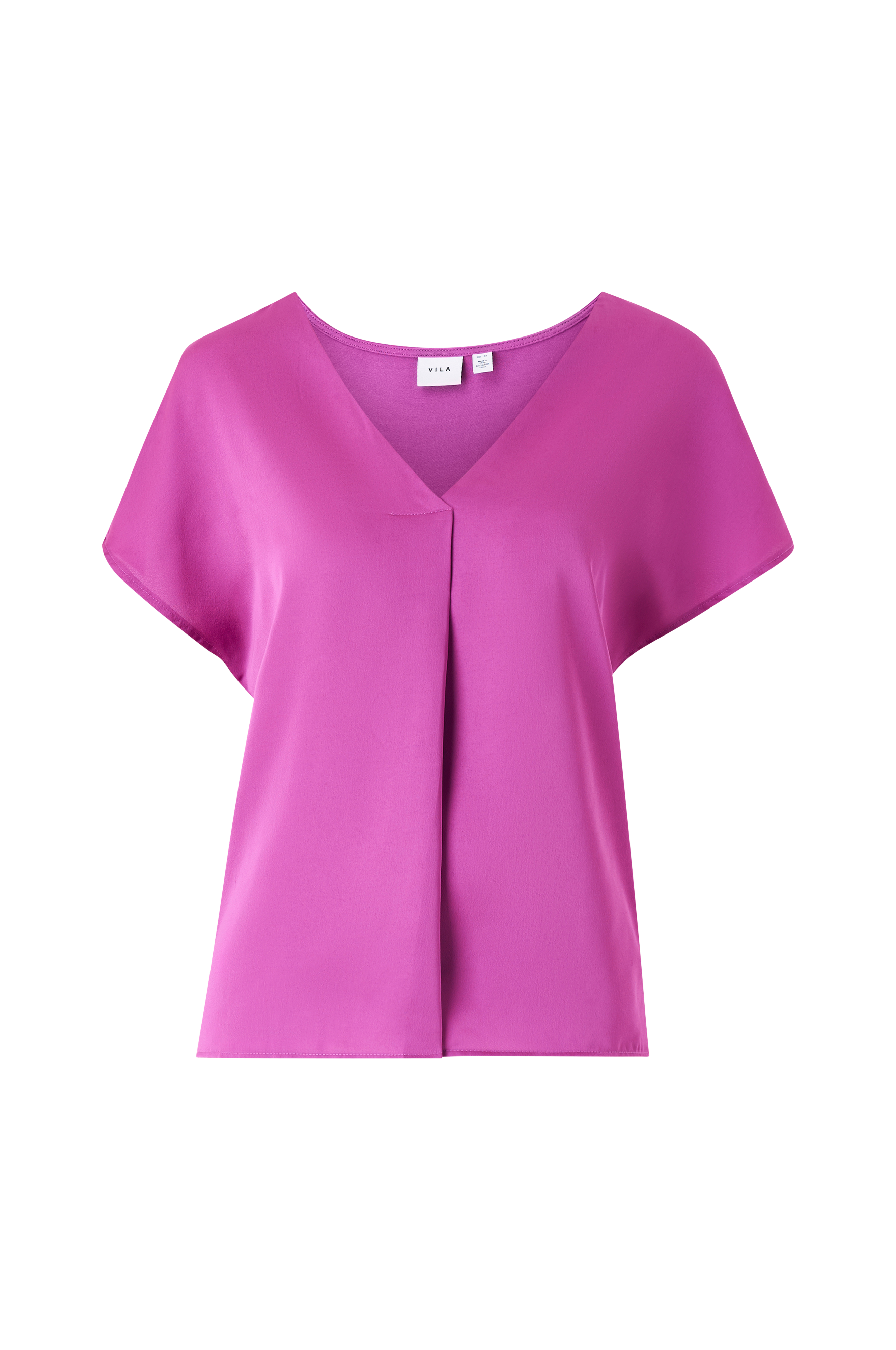 • Kortærmet bluse i satin• V-formet halsudskæring• Læg foran