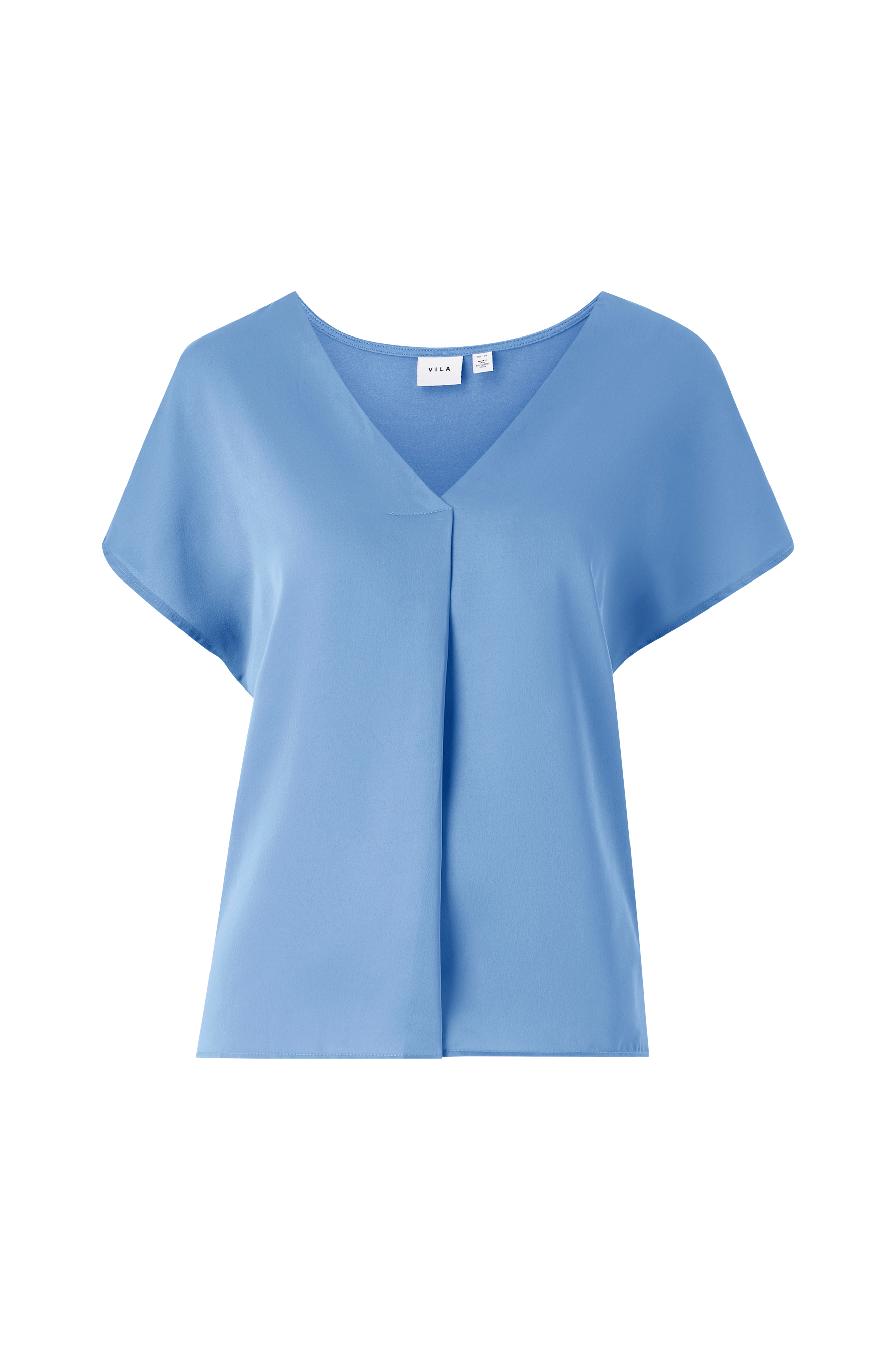 • Kortærmet bluse i satin• V-formet halsudskæring• Læg foran