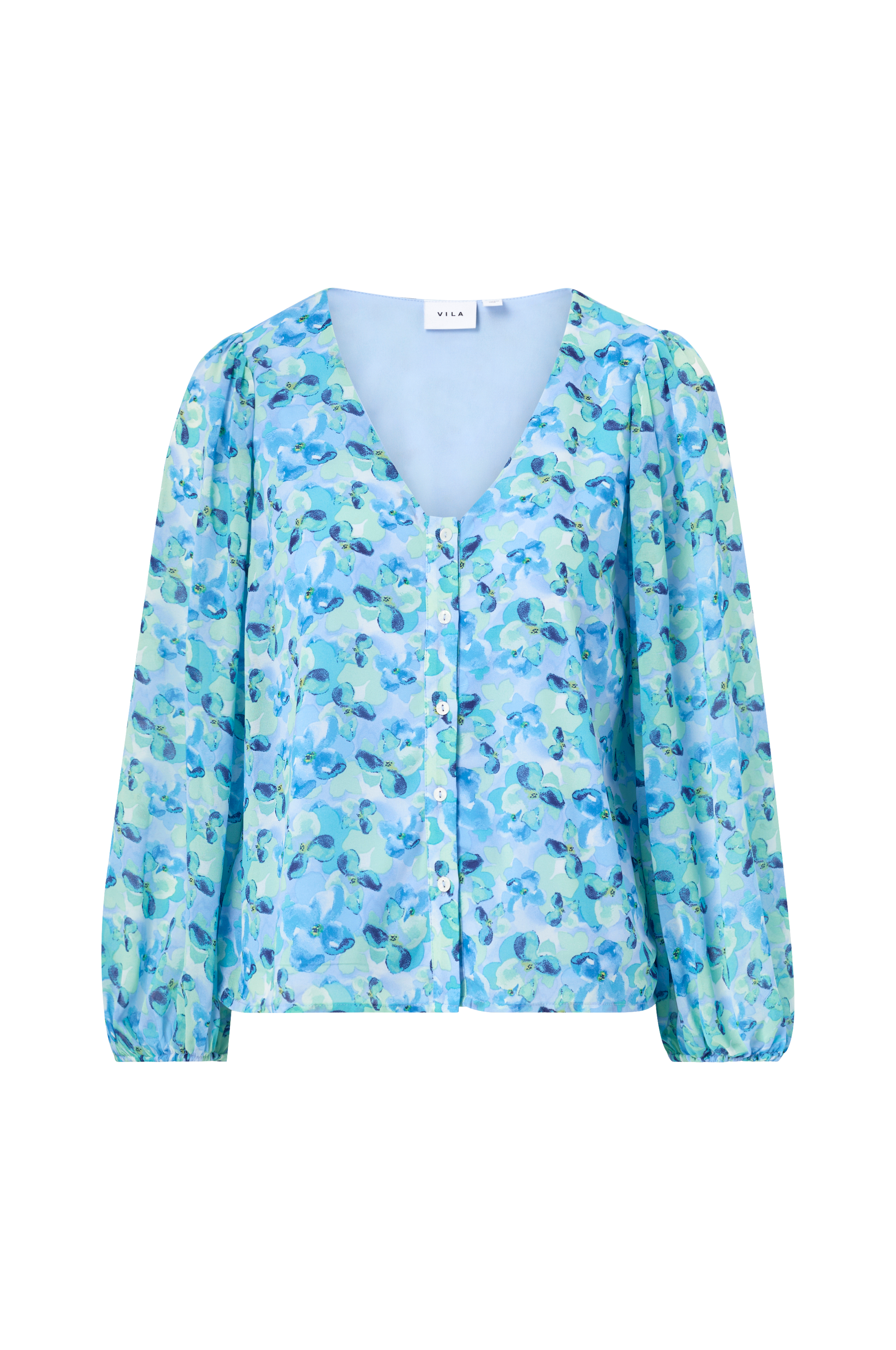 • V-udskæring• Knapper foran• Lange ballonærmer• Fremstillet af chiffon• Trikotfor• Produktet indeholder genindvundet materiale, som genbruges for at reducere mængden af affald samtidigt med at der ikke anvendes nye ressourcer.