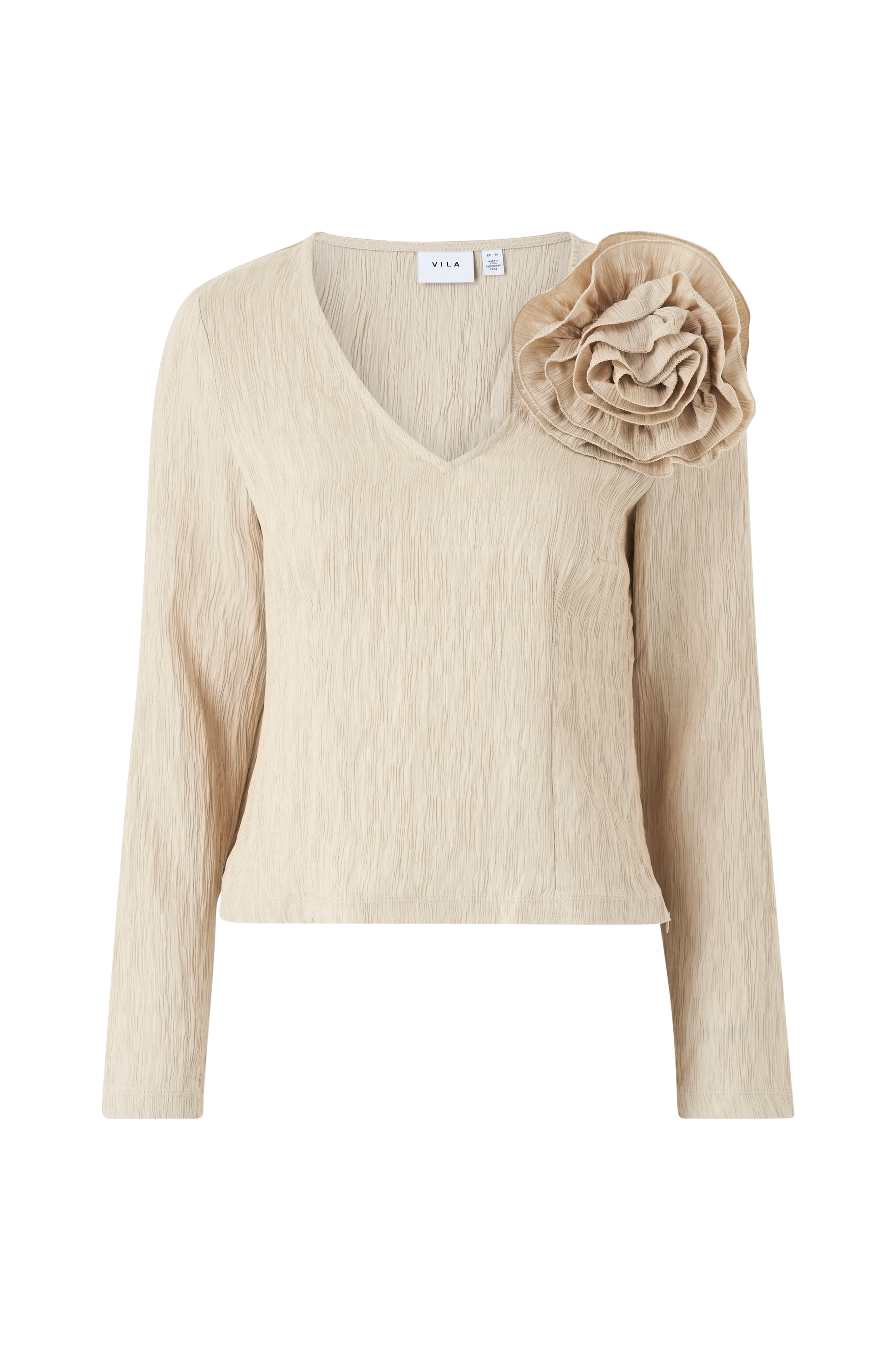 • V-udskæring• Stor, dekorativ blomst ved skulderen• Skjult lynlås i den ene side• Behandlet kvalitet