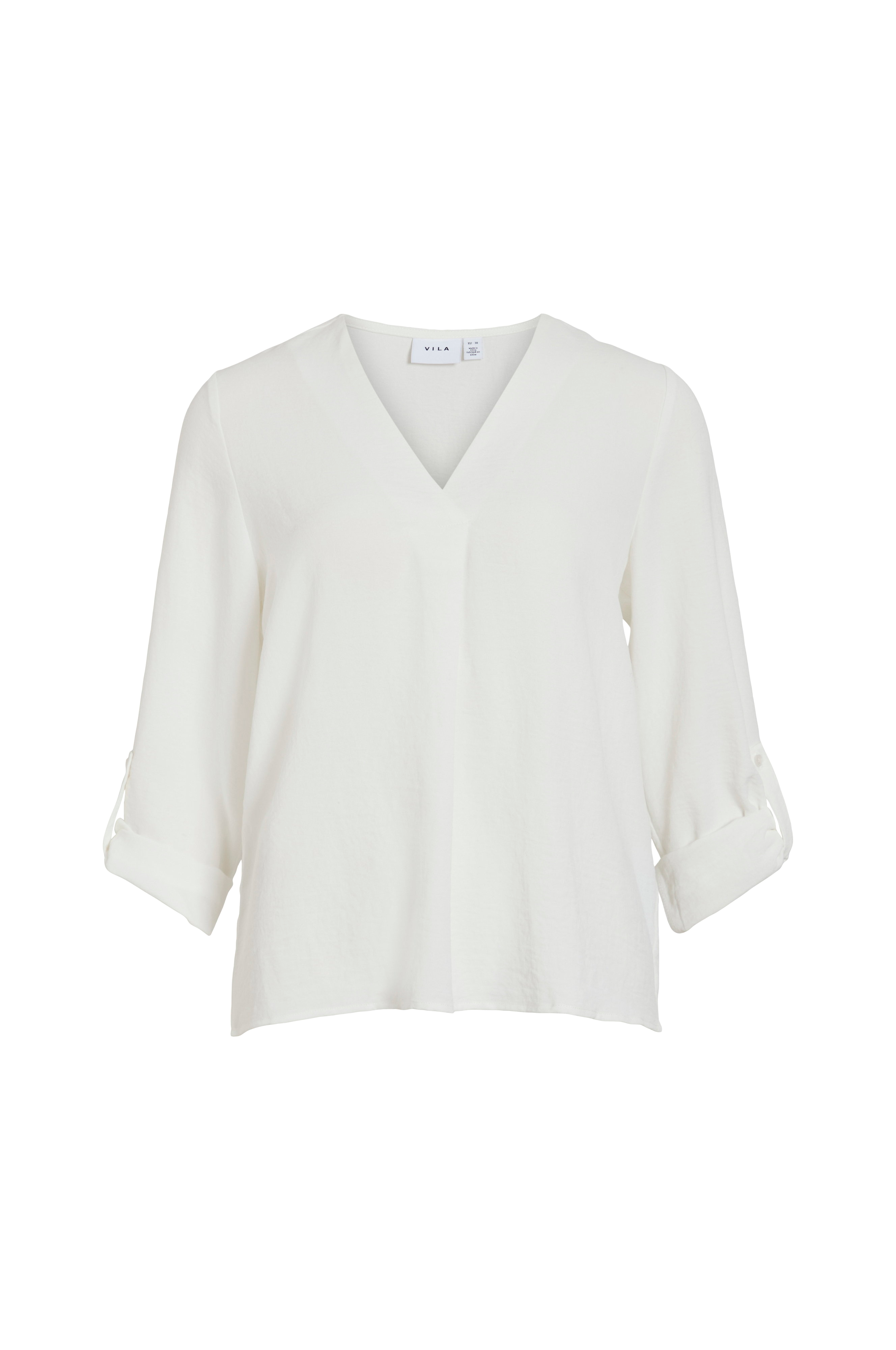 • Stof med let struktur• V-formet halsudskæring• Bølgeformet detalje ved fronten• Opfoldende, 3/4 lange ærmer