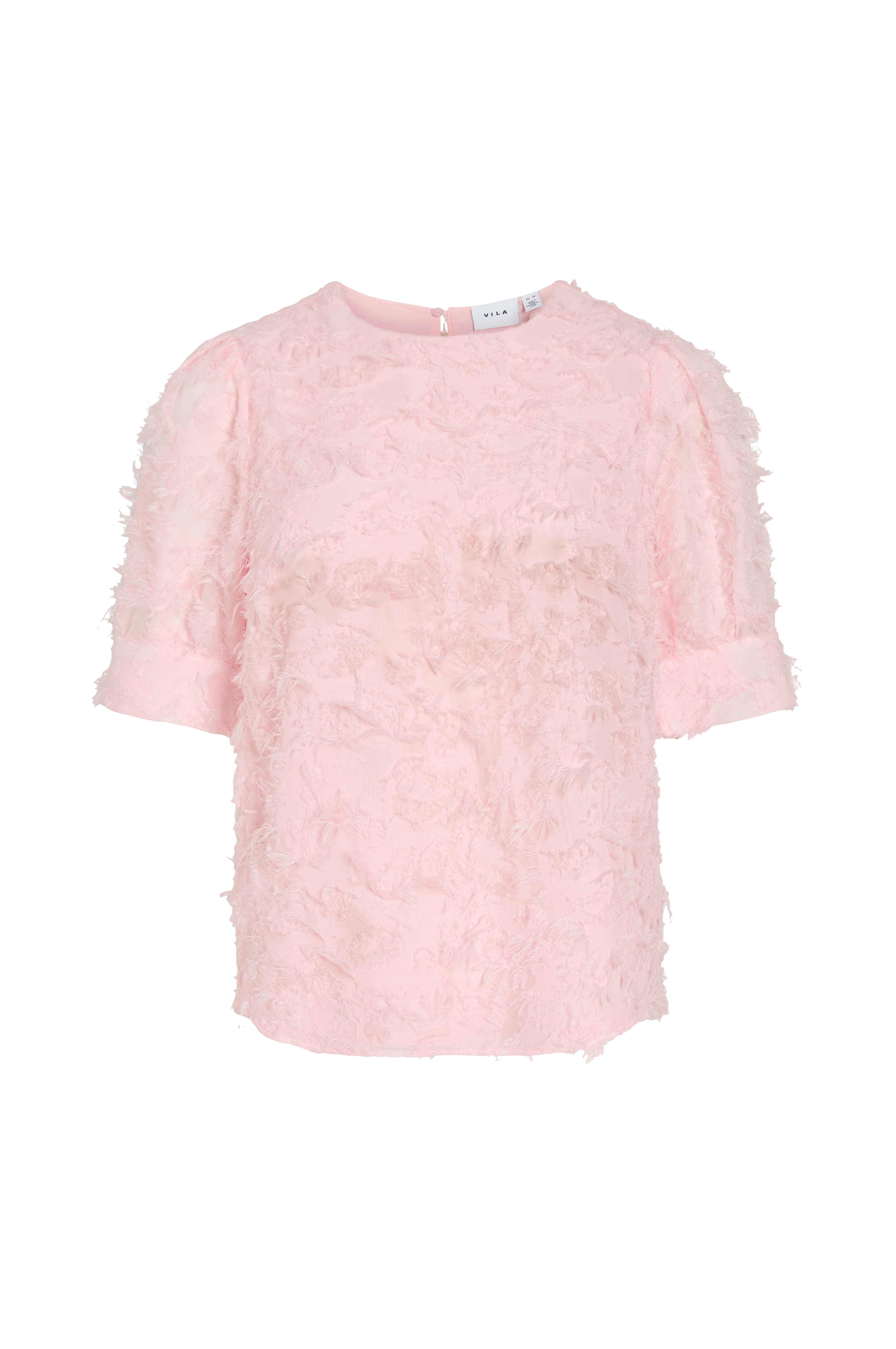 • Bluse i chiffon med håret strukturmønster• Korte ballonærmer• Slids med knap i nakken• Vævet for