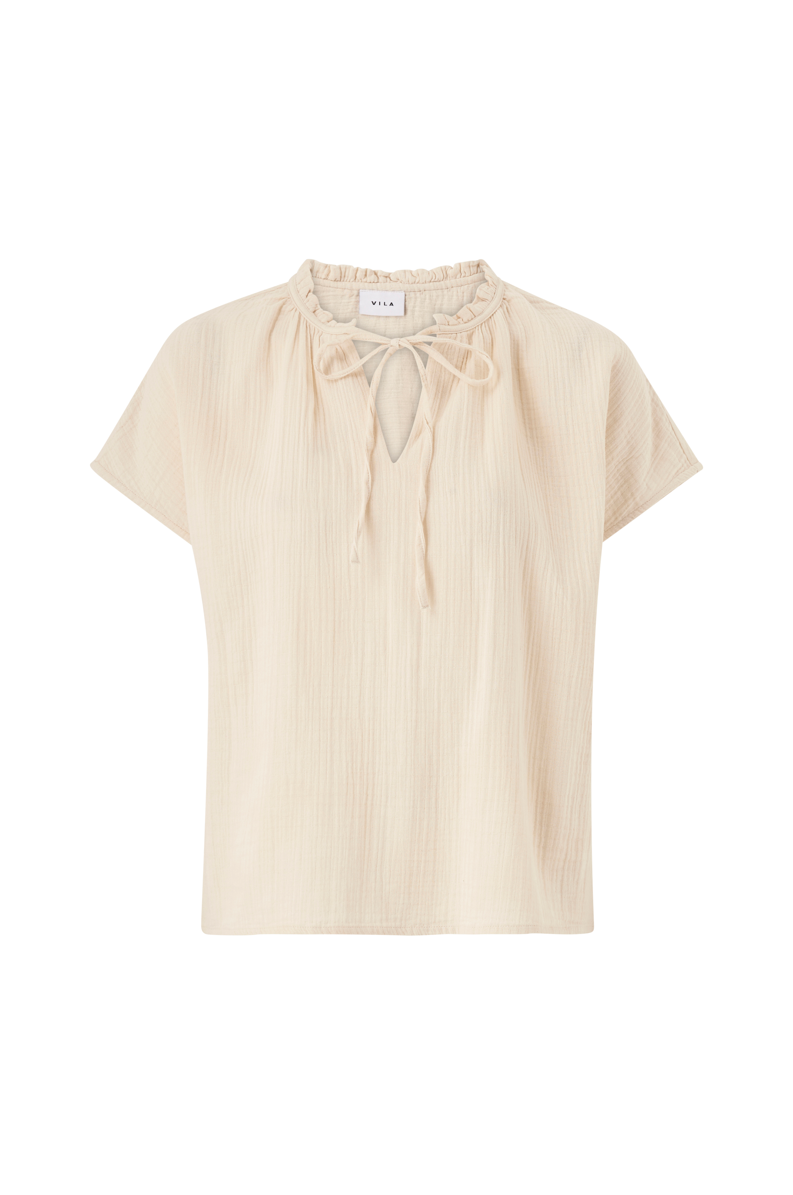 • Volant i halsen• Ventilation med bindebånd foran• Korte ærmer• Behandlet kvalitet