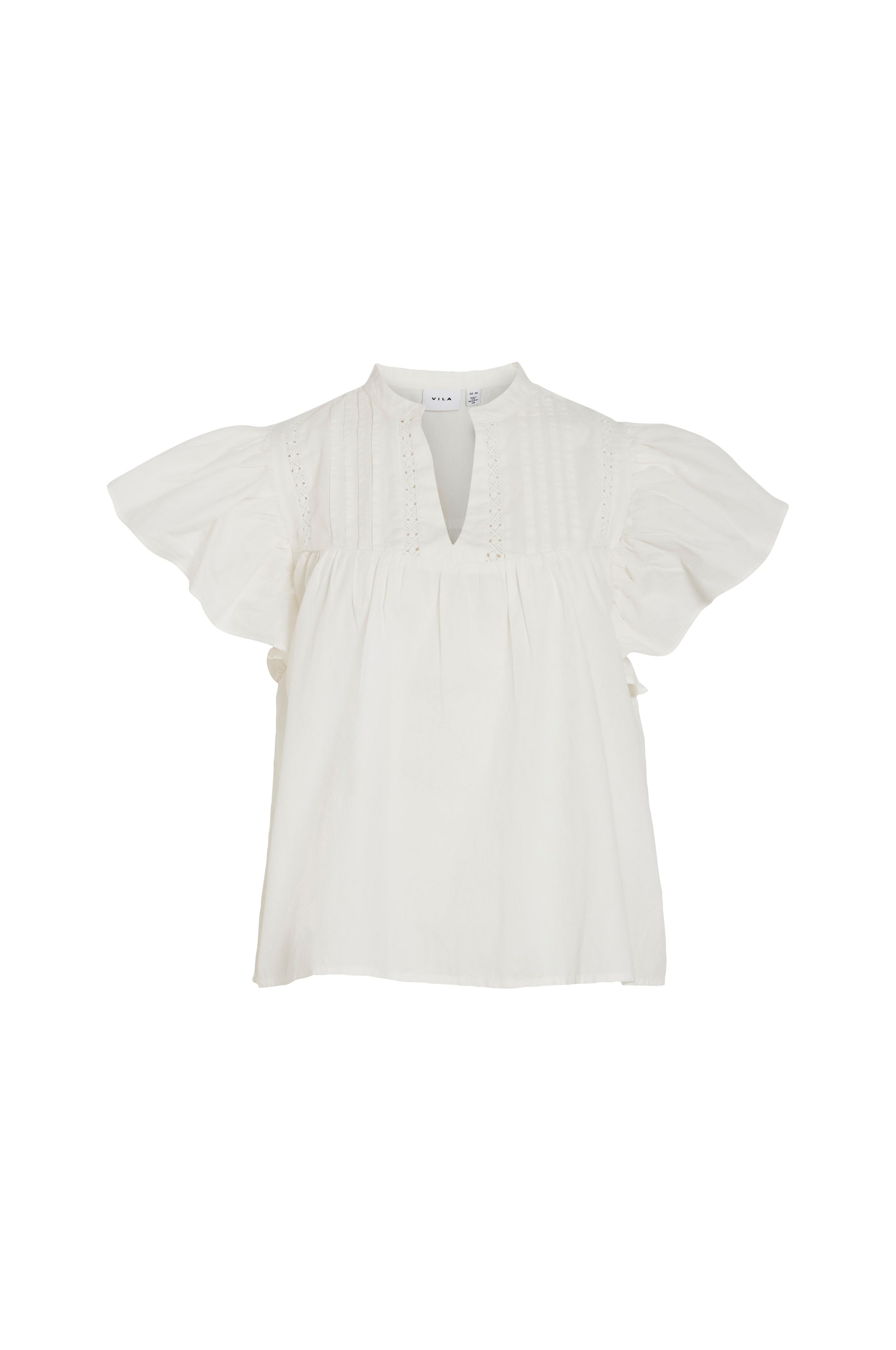 • Bred, ærmeløs model• Linning med biselæg og blonde foran• Rund hals med ventilation foran• Brede volanter omkring skuldrene