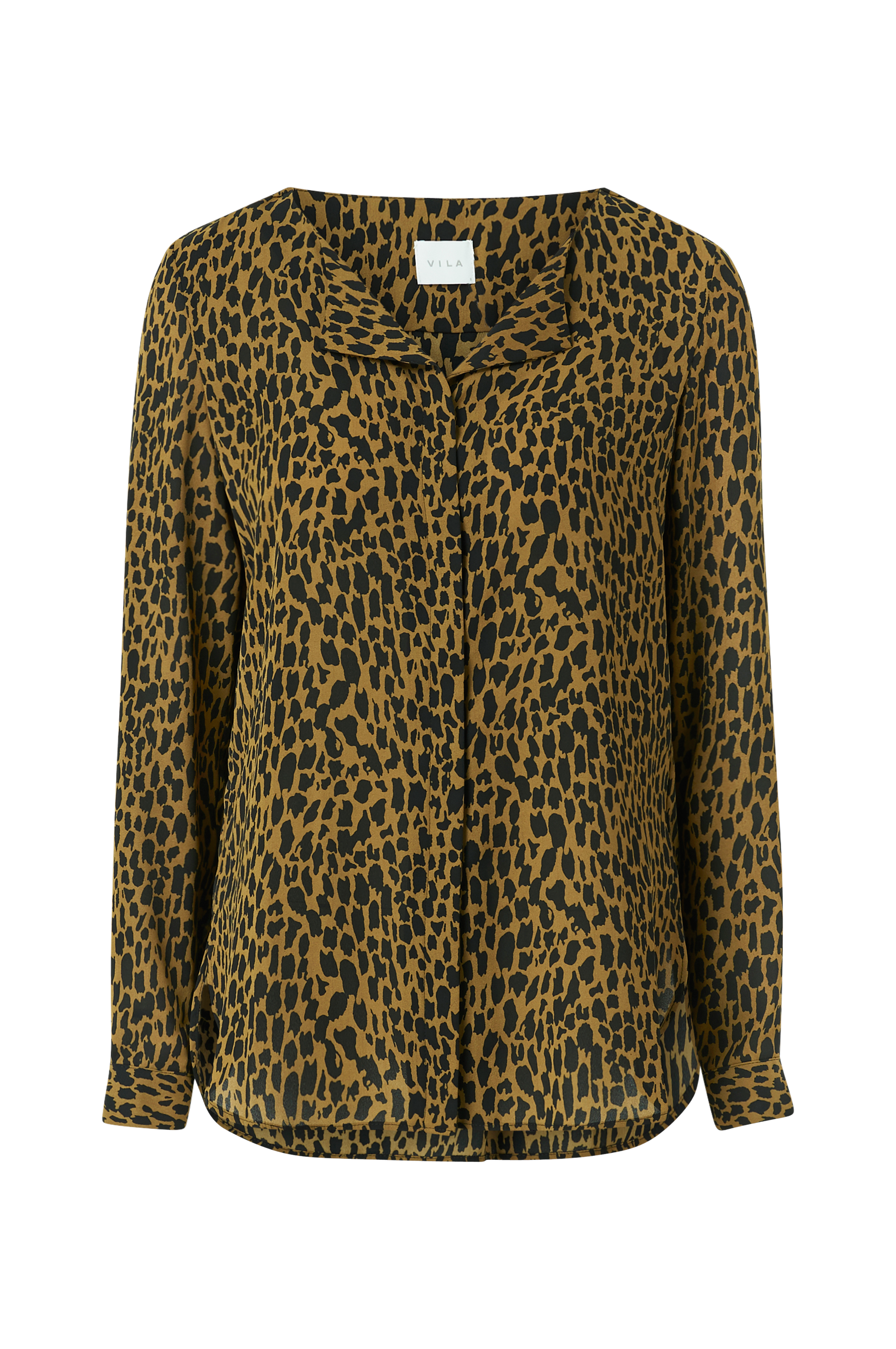 Bluse viLucy L/S Shirt fra Vila. Lige model med revers foran i hals og stolpelukning hele vejen ned med skjulte knapper. Afskåret skulderbærestykke med lagte modgående læg bagpå og langt ærme med manchet i ærmekanten. Afrundet kant forneden med slids i siderne og længere bagstykke. Vævet chiffonkvalitet. Længde ca. 73 cm i str. S.