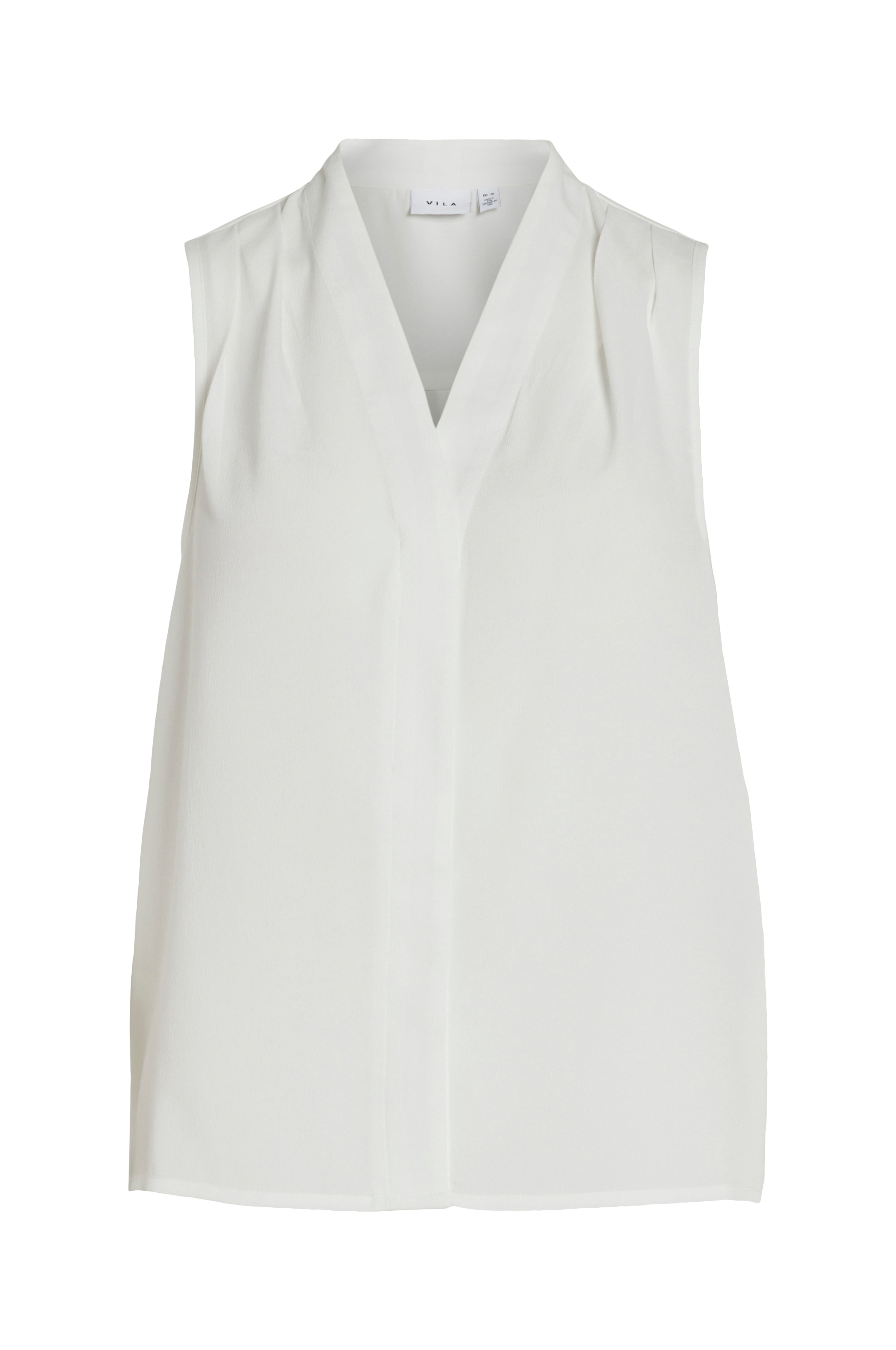 • Ærmeløs bluse• V-udskæring• Læg midt foran og på skuldrene• Tynd kvalitet