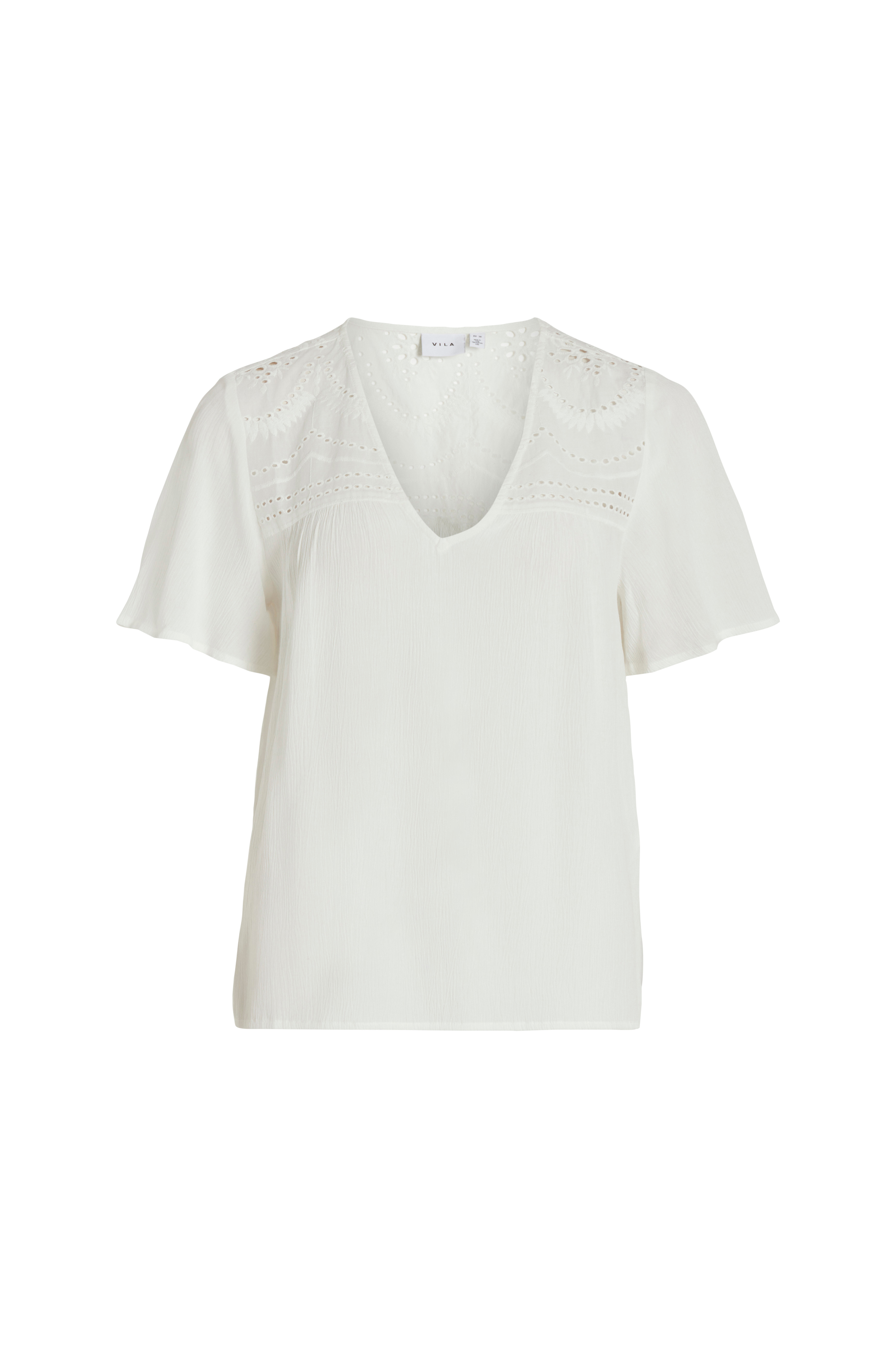 • Bluse i rynket viskose• V-udskæring• Broderet hulmønster