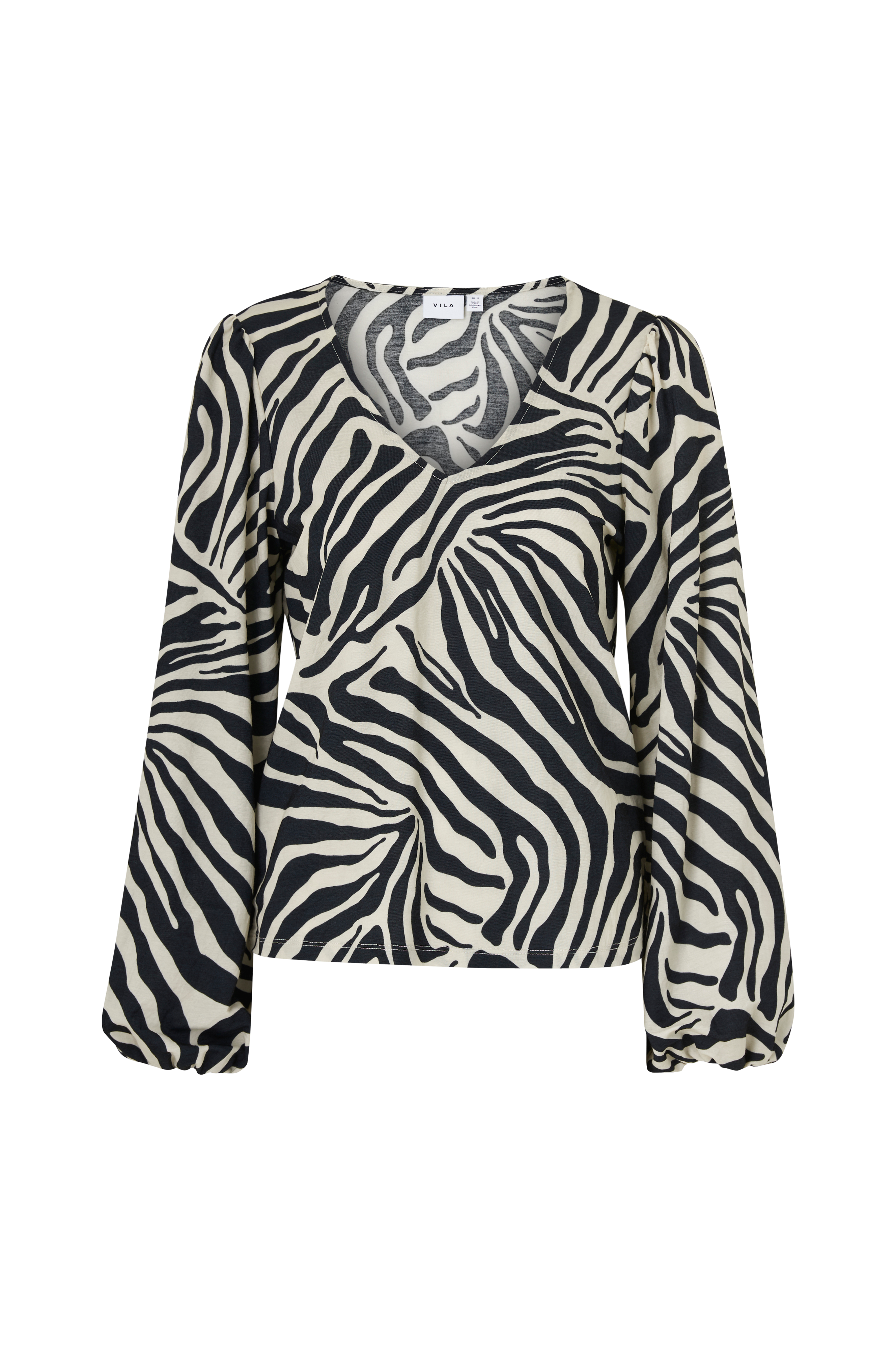 • Zebramønstret bluse• V-udskæring• Ballonærmer