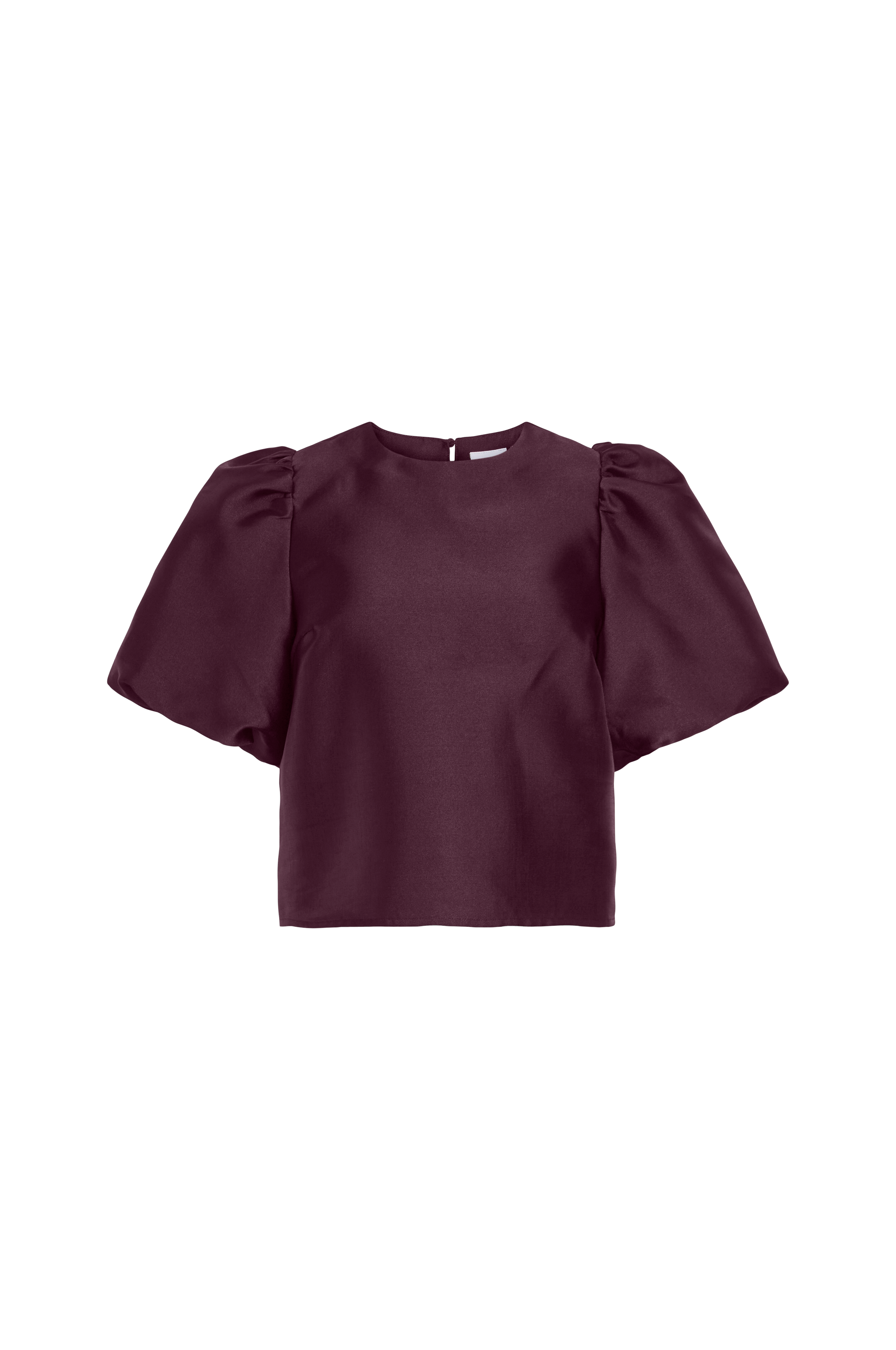 • Kort, lige model i satin• Rund hals med knap i nakken• Kort ballonærme