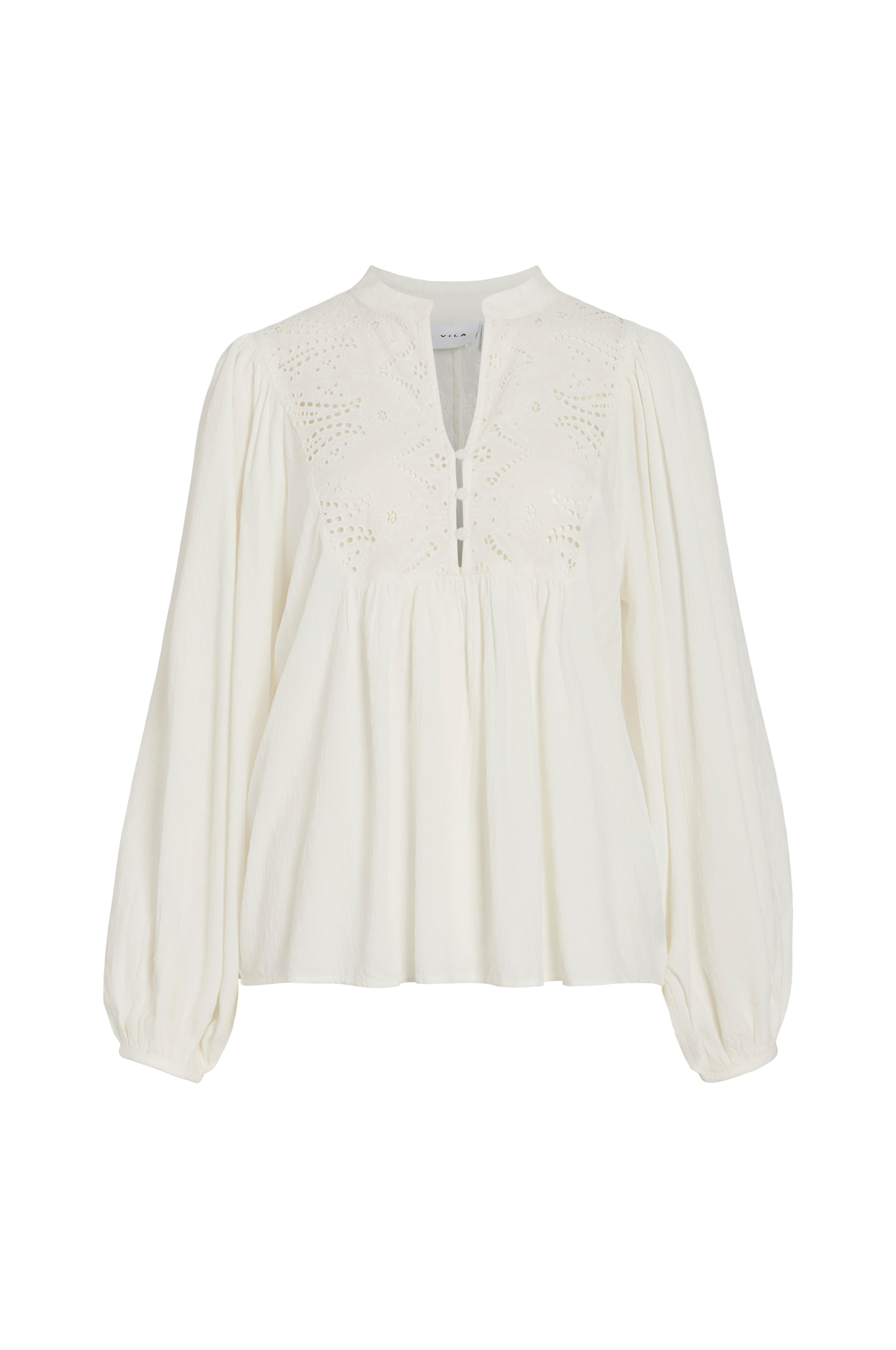 • Tynd bluse i viskose med struktur• Lange, brede ærmer med elastik ved manchetterne• Linning i blonde med knapstolpe foran