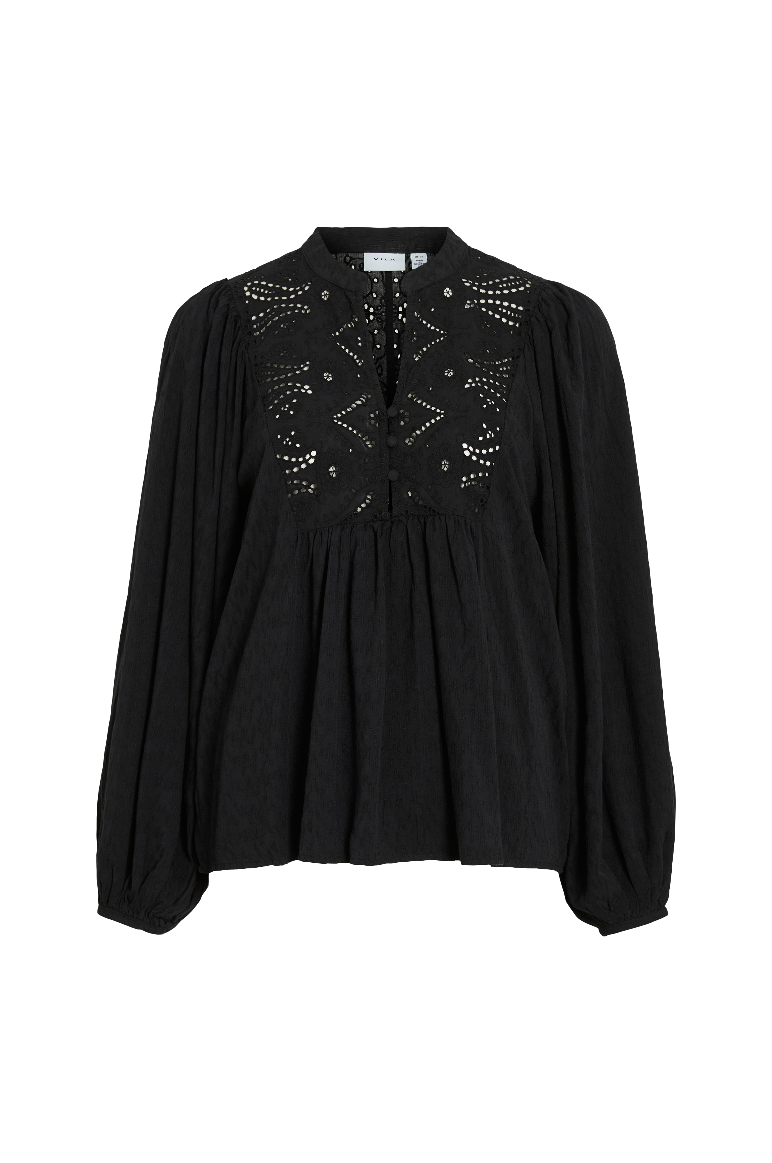 • Tynd bluse i viskose med struktur• Lange, brede ærmer med elastik ved manchetterne• Linning i blonde med knapstolpe foran