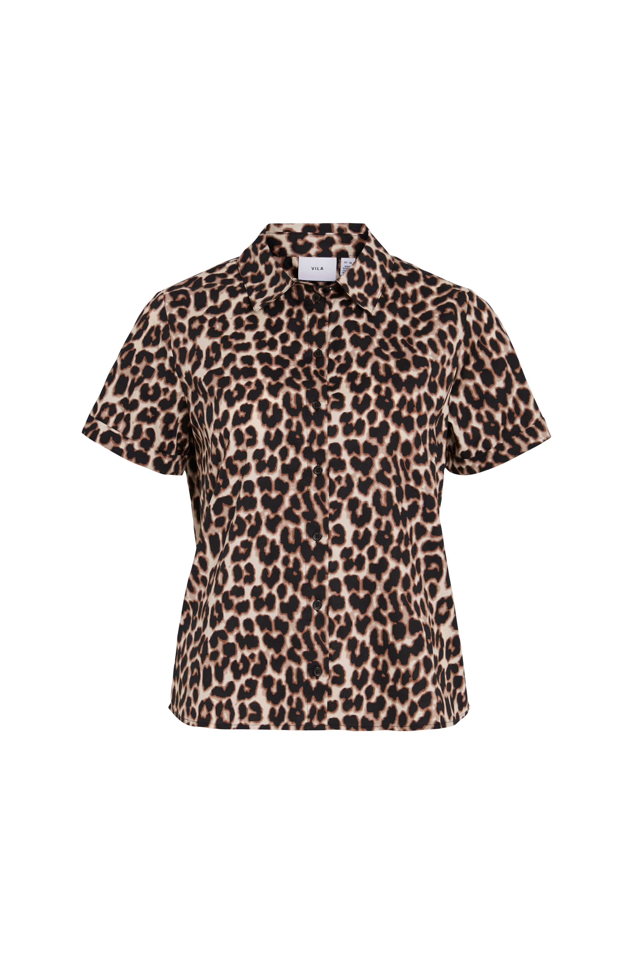 • Lige, leopardmønstret model• Lille krave• Knapper foran• Kort ærme med fæstet oprullet• Afrundet søm