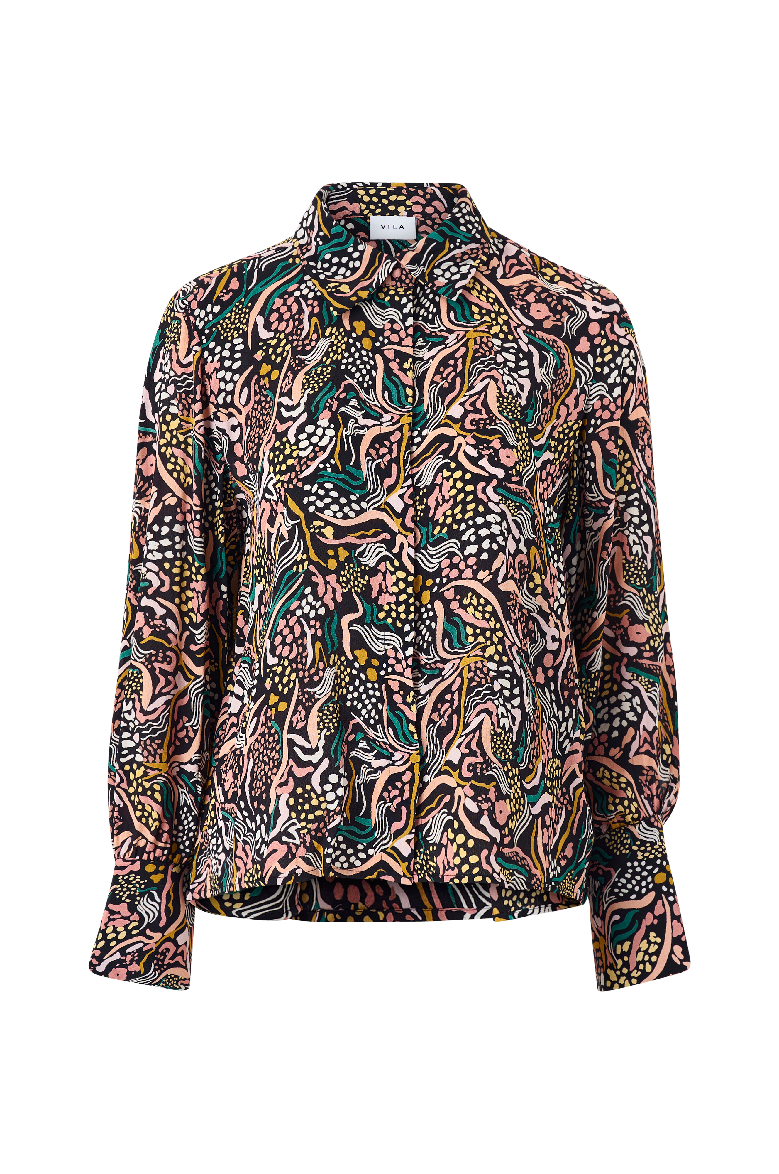 • Mønstret bluse i viskose• Knapper foran• Lange ærmer med manchet