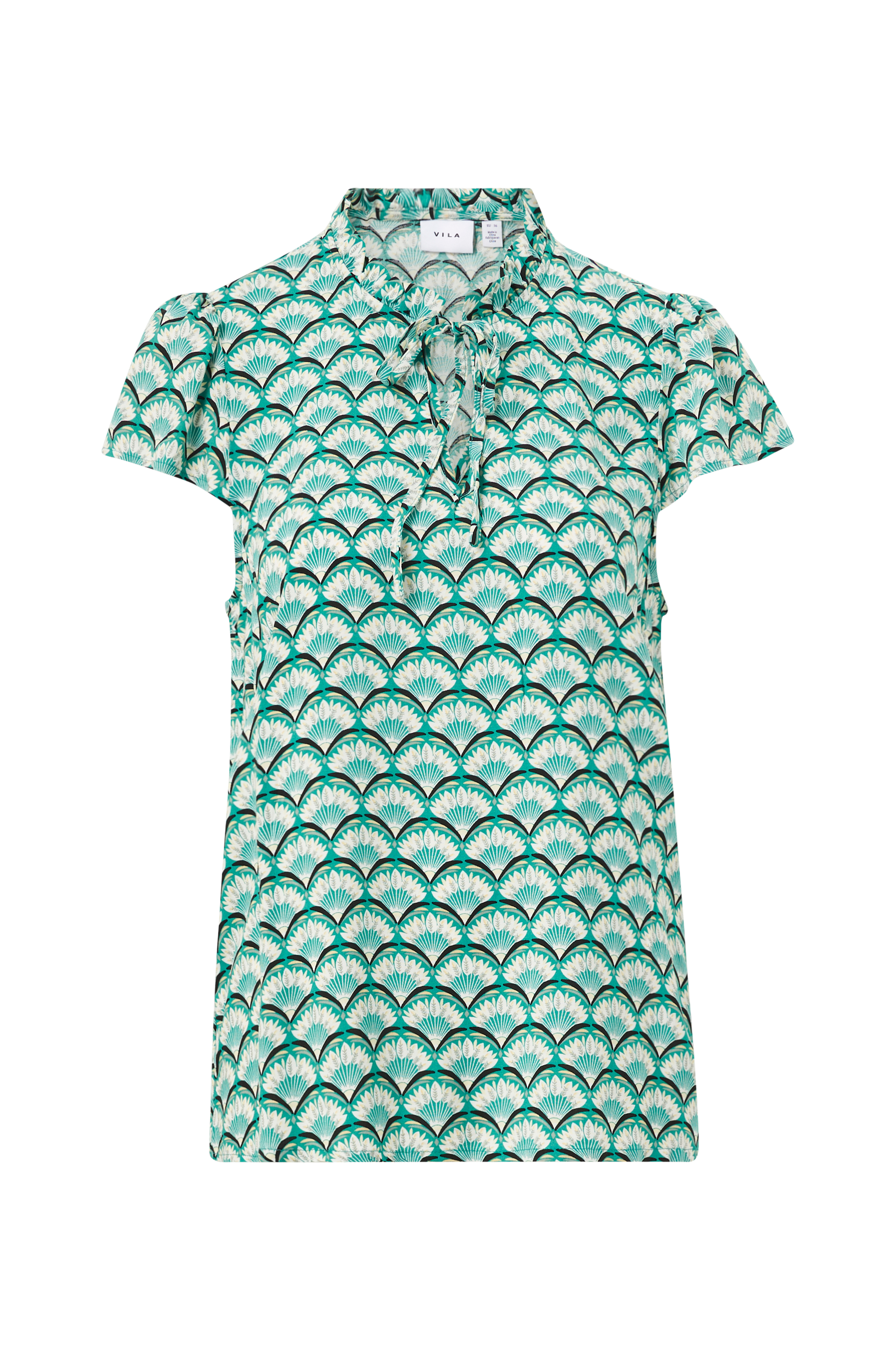 • Mønstret bluse i viskose• V-udskæring med bindebånd• Volant i halsen• Kort ærme