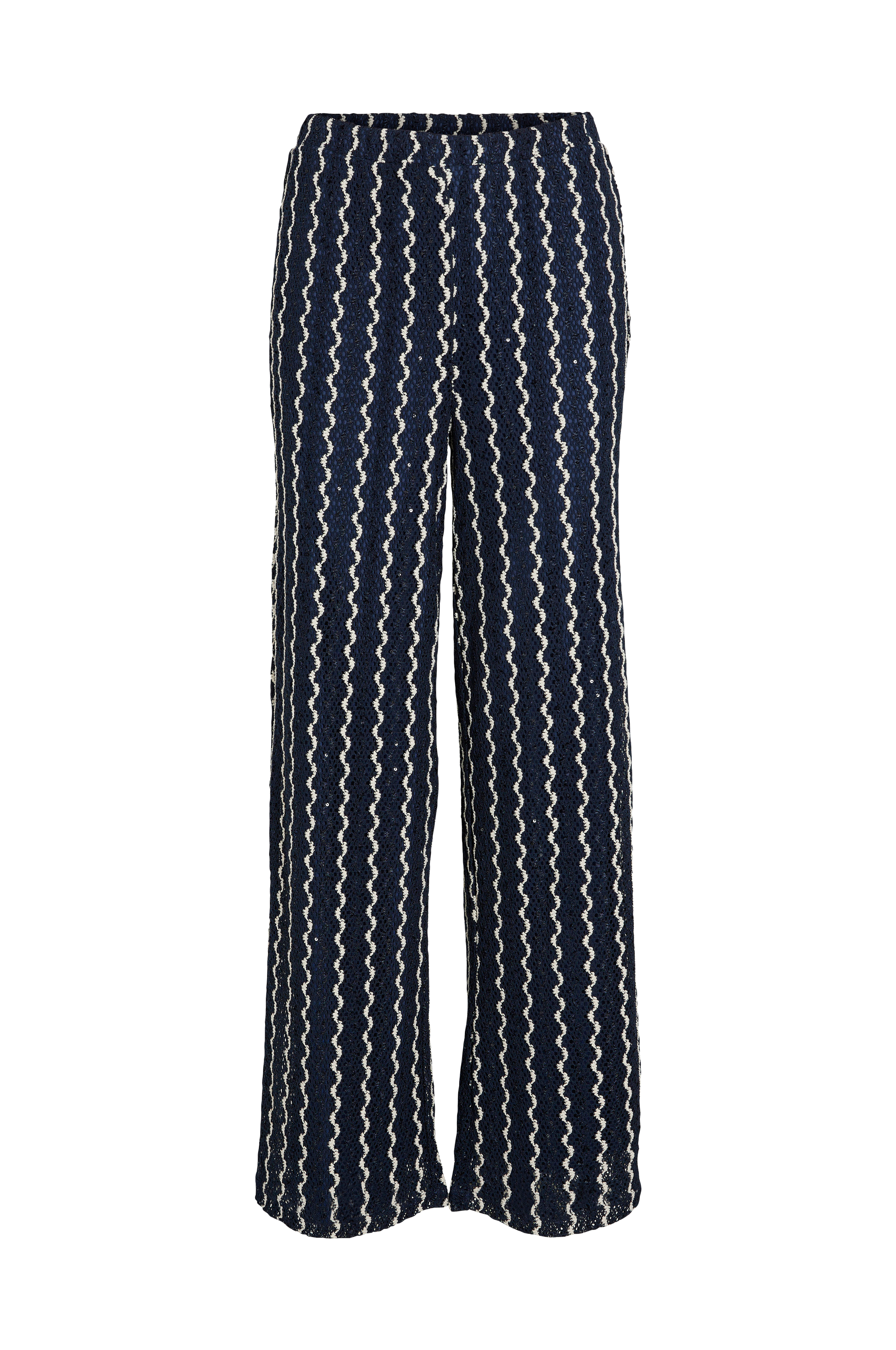 • Model med åbent stof kvalitet og broderede pailleter• Høj talje med indlagt elastik• Brede, lige ben• Trikotfor• Indre benlængde: 77 cm i størrelse S