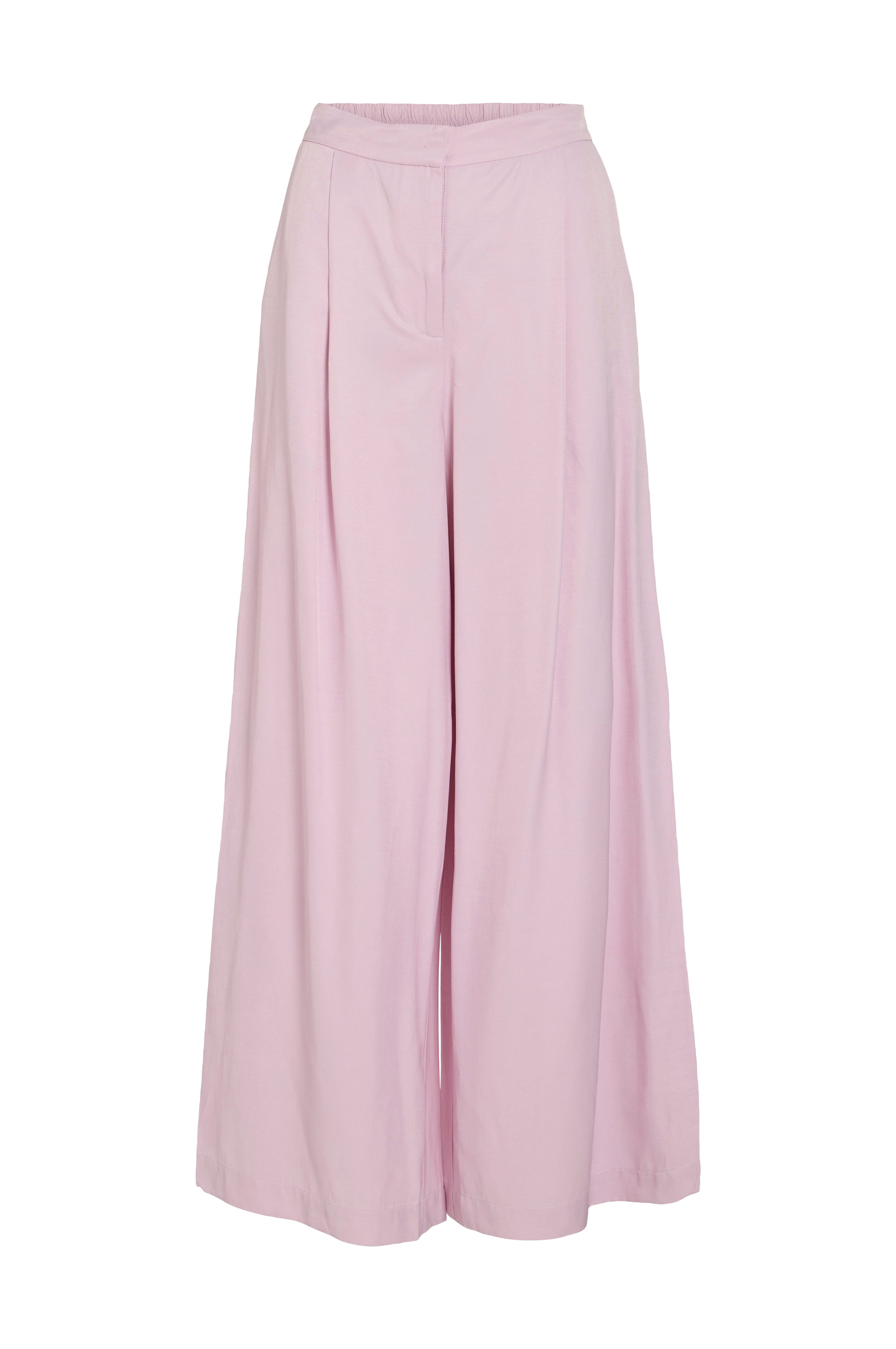 • Model med brede, lige ben• Høj talje• Linning med elastik bagpå• Gylp med lynlås• Skrå lommer foran• Snydelommer bagpå• Indre benlængde: 77 cm i størrelse 36