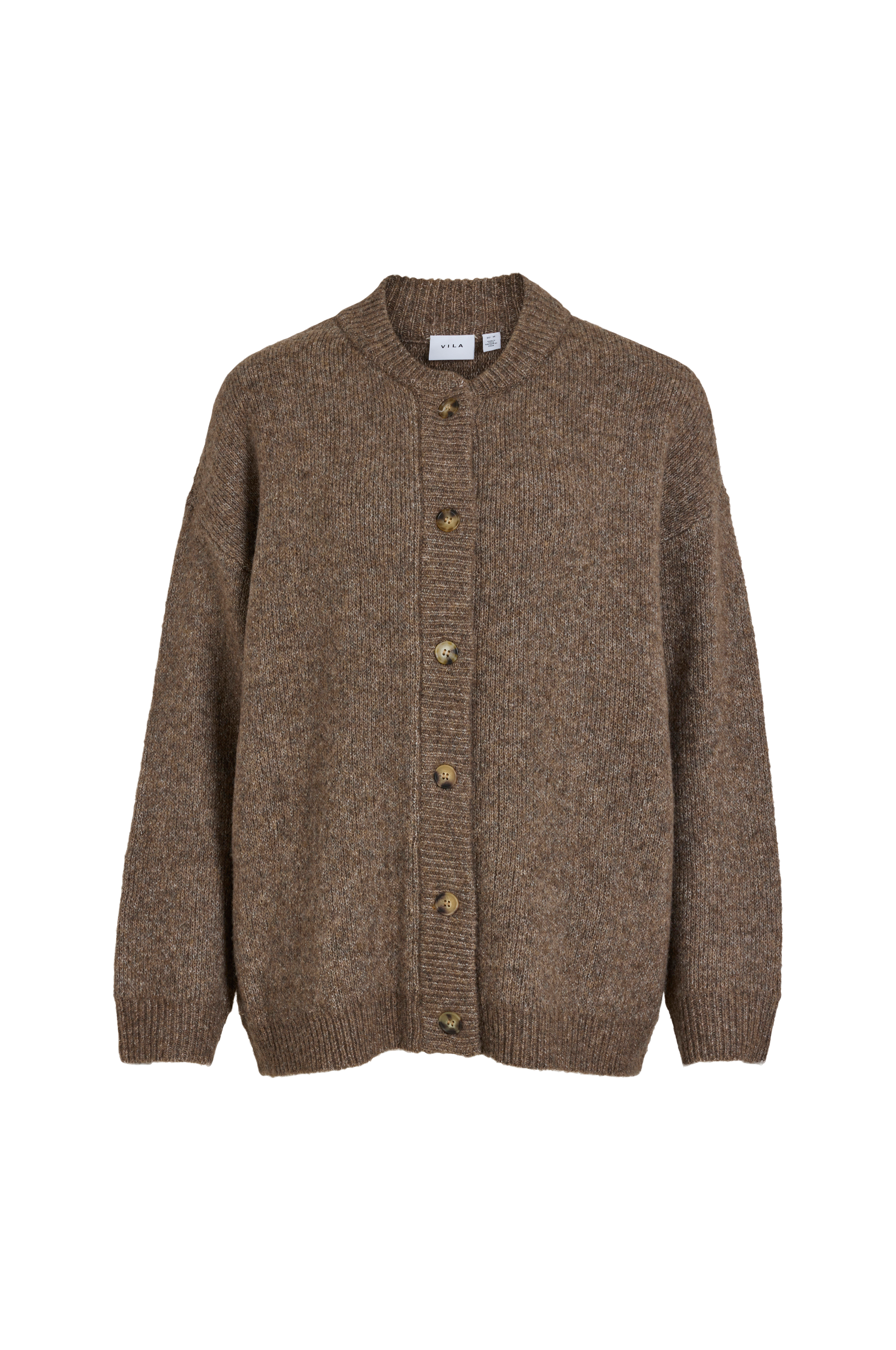 • Lige, uformel model• Store knapper• Halvhøj, ribstrikket krave• Nedsænket skulder med langt ærme• Ribstrikkede kanter