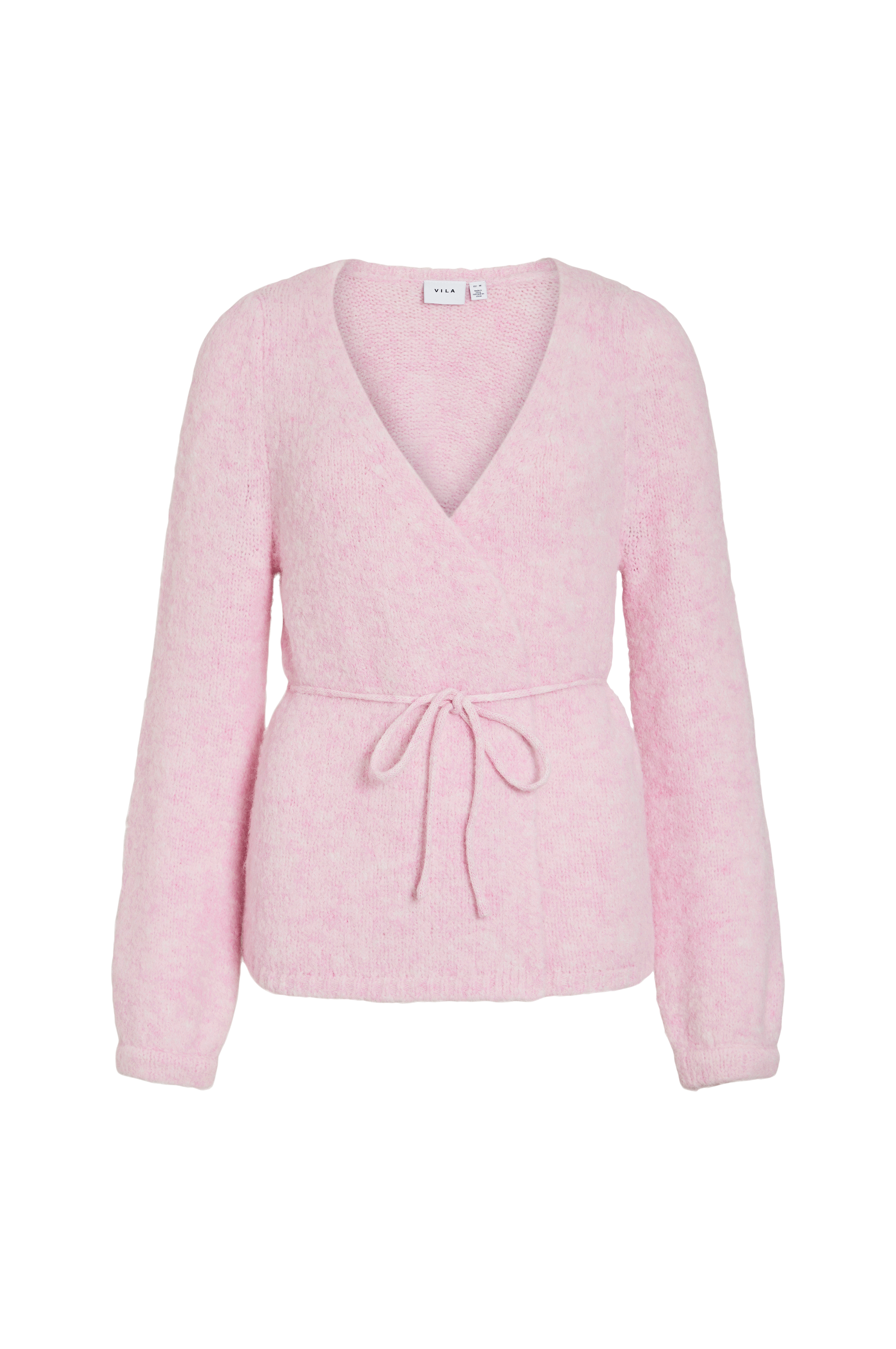 • Fintstrikket cardigan med overpaningsmodel• V-udskæring• Lange pufærmer• Bindebånd ved taljen